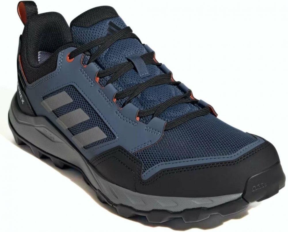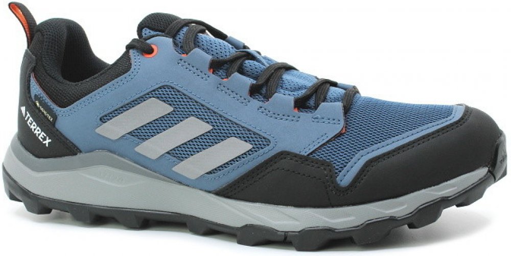 Tenisky Tracerocker 2.0 GORE-TEX Trail Running Vydej se během běhu nevyšlapanými cestičkami. Tyto trailové tenisky adidas ti zajistí sucho a spolehlivý záběr i na nestabilních, skalnatých a mokrých trasách. Jejich prodyšná membrána GORE-TEX nepropouští vodu, díky čemuž zůstaneš v pohodlí i ve vlhkých podmínkách, ve vysoce namáhaných zónách mají odolné vrstvy, ideální do drsného terénu, nesou se na lehkém tlumení zajišťujícím příjemný došlap a jejich podrážka TRAXION s výčnělky všech směrech, takže se můžeš vydat, kam tě nohy zavedou. Nepromokavé trailové běžecké tenisky s obsahem recyklovaných materiálů. Projmutý střih. Zapínání na šňůrky. Plotýnka na ochranu před skalami v mezipodešvi.