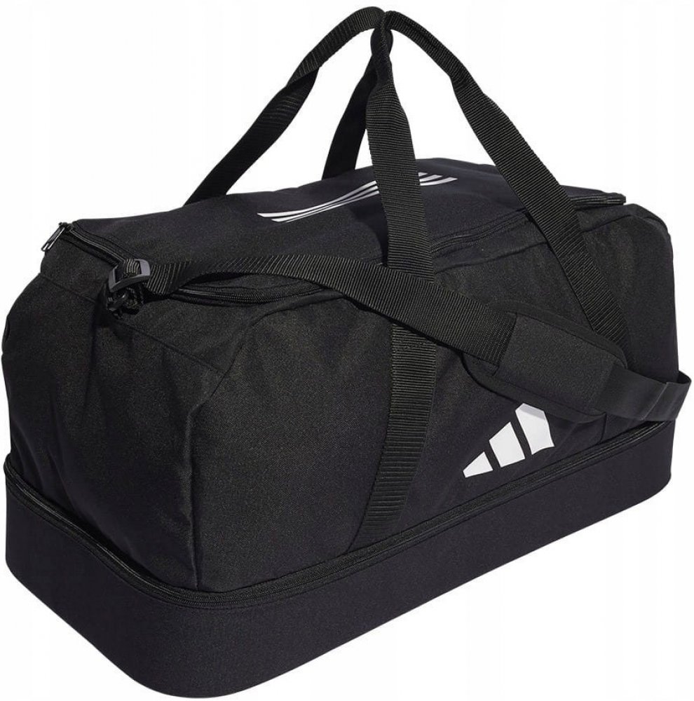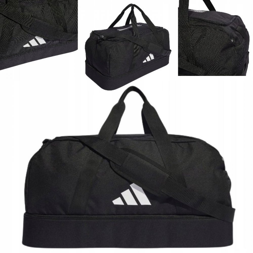 Tato sportovní taška adidas TIRO LEAGUE DUFFEL M se vám bude hodit na cestě na zápasy a zpět. Díky spodní přihrádce z tvrdého materiálu budete mít ve svých věcech pořádek a budou bezpečně uložené. Do boční kapsy ze síťoviny si můžete schovat lahev s vodou nebo svačinu na poločas. Velký otvor ve tvaru U zaručí, že vaše vybavení snadno najdete.