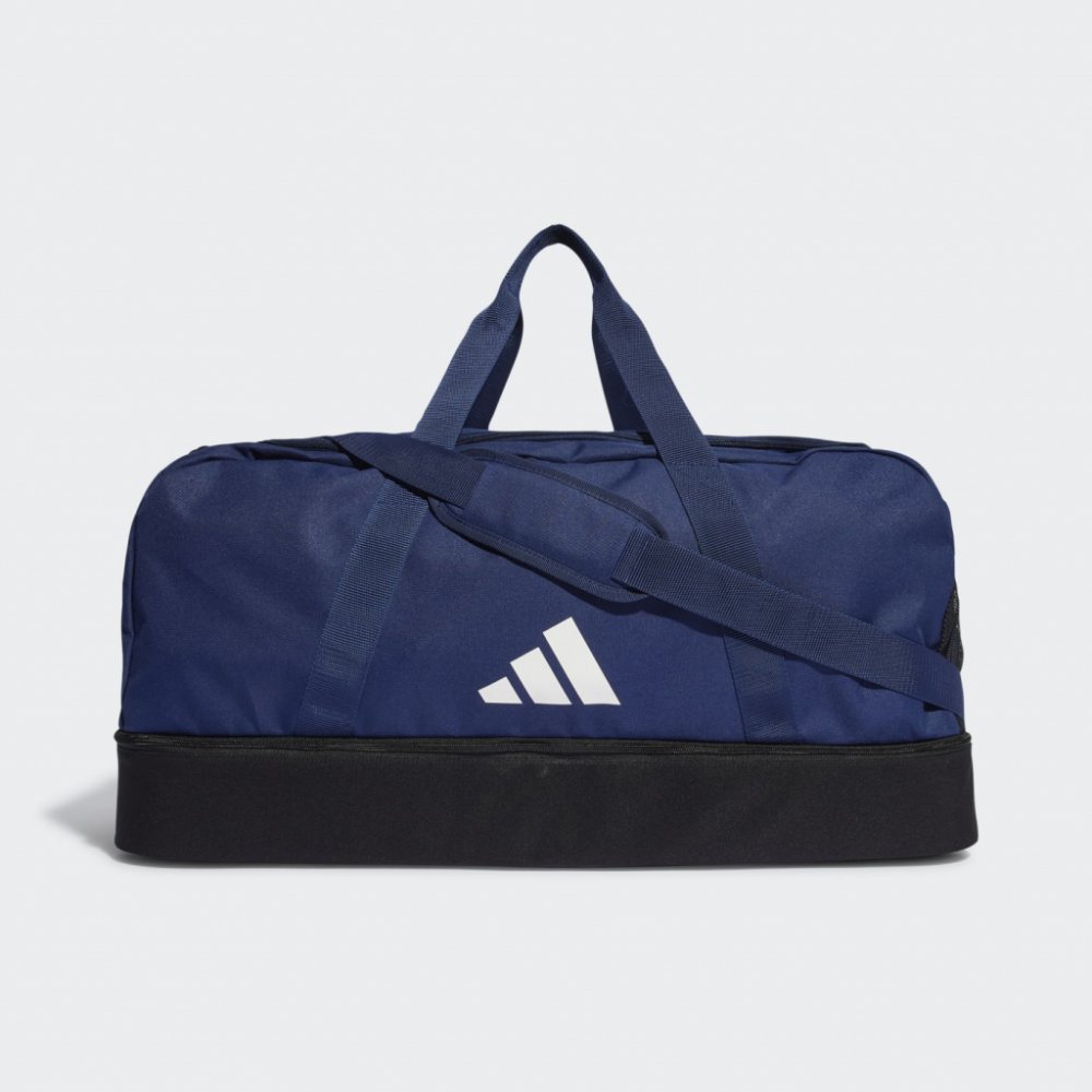 Do této sportovní tašky adidas TIRO LEAGUE DUFFEL L se vám vejde vše, co budete na hřišti potřebovat. Díky spodní přihrádce z tvrdého materiálu budete mít ve věcech pořádek a budou bezpečně uložené. Do boční kapsy ze síťoviny se vejdou lahve na vodu. Díky nastavitelnému ramennímu popruhu se taška pohodlně nosí. Díky otvoru ve tvaru U se ke svým věcem v šatně snadno dostanete.