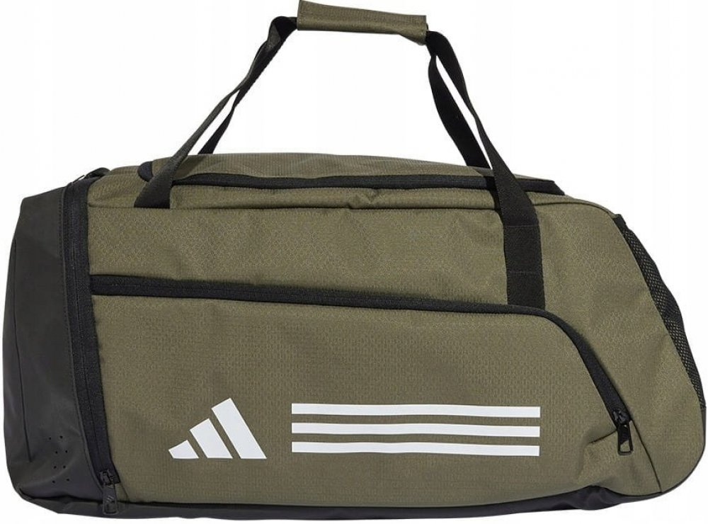 Taška značky adidas. Cestovní taška osloví trendy designem v olivově zelené barvě. Na přední straně ji zdobí logo adidas a charakteristické tři pruhy. Má hlavní komoru, která je dosti prostorná na všechny věci, které budete potřebovat na služební cestu, trénink či výlet. Nechybí ani přední kapsa na zip, kde můžete uložit nejpotřebnější věci. Plusem jsou boční kapsy pro uložení drobností.