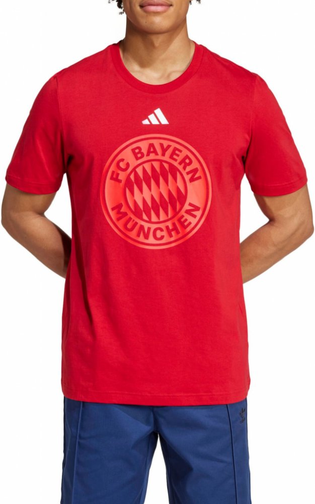 Toto fotbalové tričko adidas FC BAYERN DNA GRAPHIC vzdává hold hráčům FC Bayernu Mnichov. Je vyrobené z měkkého bavlněného žerzeje a má klasický výstřih, který vám dopřeje pohodlí. Fanděte FC Bayernu Mnichov kdekoli.