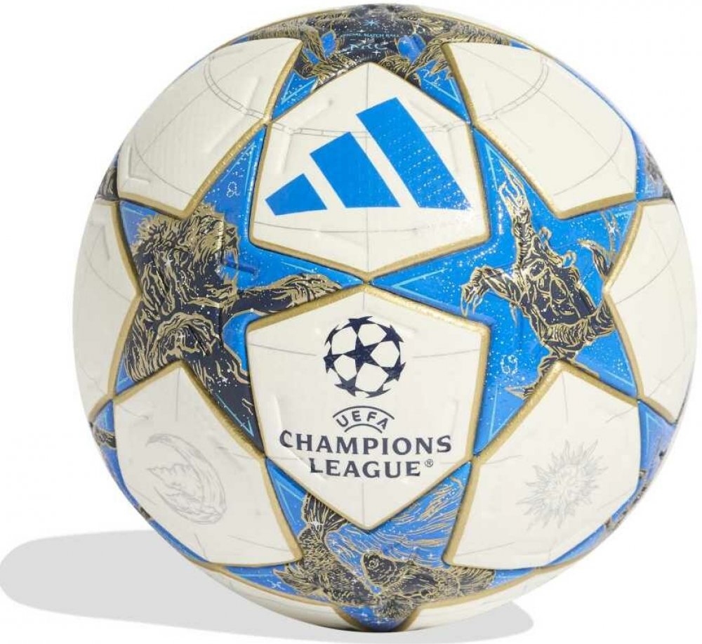 Tento míč s výrazným designem a grafikou inspirovanou astronomickými hodinami a znameními zvěrokruhu je oficiálním zápasovým míčem Adidas pro ligu UCL 25/26.