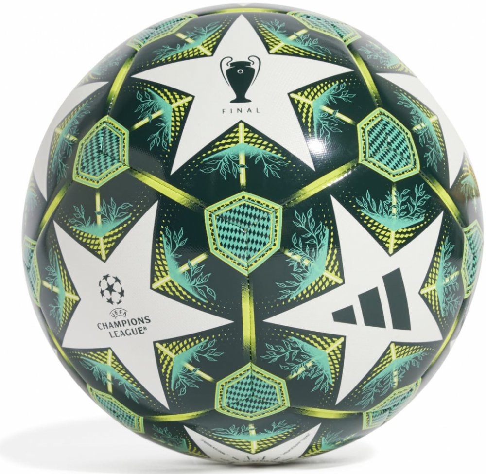 Tento fotbalový míč adidas Training se inspiroval oficiálním zápasovým míčem Ligy mistrů. Zelená barva připomíná patinu mnichovských věží. Strojově šitý plášť je určený pro náročný trénink a zdobí ho rafinované městské detaily a turnajové logo. Díky konstrukci s butylovou duší je vždy připravený ke hře.