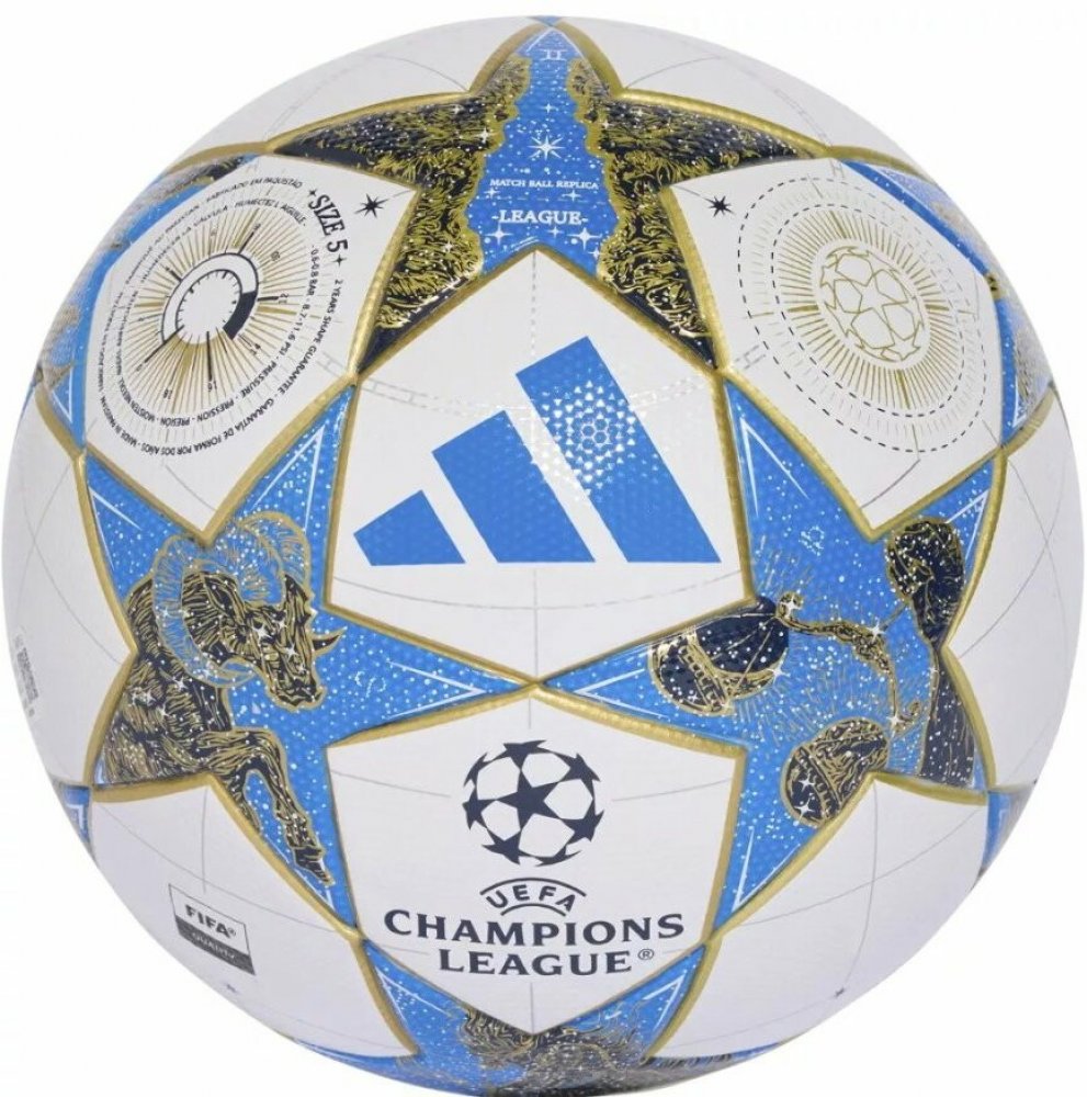Fotbalový míč Adidas UEFA Champions league 25/26 se inspiroval oficiálním míčem ligy UEFA Champions league. Vyniká výrazným designem, jehož grafika připomíná astronomické hodiny a znamení zvěrokruhu. Vyrobený je ze 100% recyklovaného termoplastického polyuretanu. Disponuje odolným, strojově šitým povrchem a pružnou butylovou duší. Fotbalový míč Adidas UEFA Champions league 25/26 je ideální na trén...