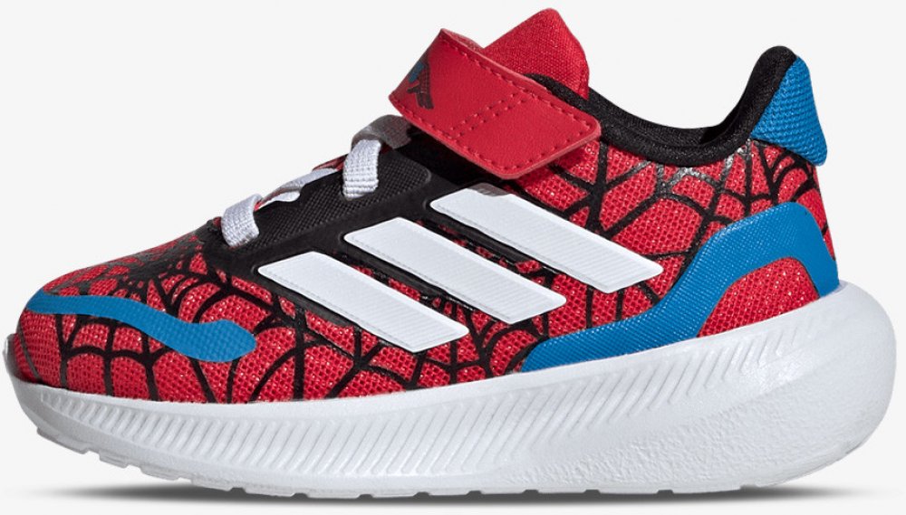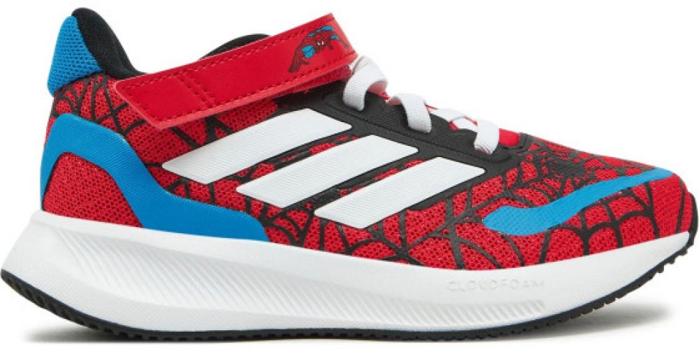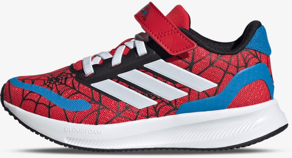 V této dětské běžecké obuvi adidas RUNFALCON SPIDER-MAN EL C s motivem Spider-Mana od Marvelu si vaše ratolest užije celý den. Díky elastickým tkaničkám a pásku na suchý zip se boty snadno přezouvají. Mezipodešev Cloudfoam dopřeje dětem měkké pohodlí při každém kroku. Grafické prvky a barvy inspirované Spider-Manem potěší každého fanouška pavoučího superhrdiny.