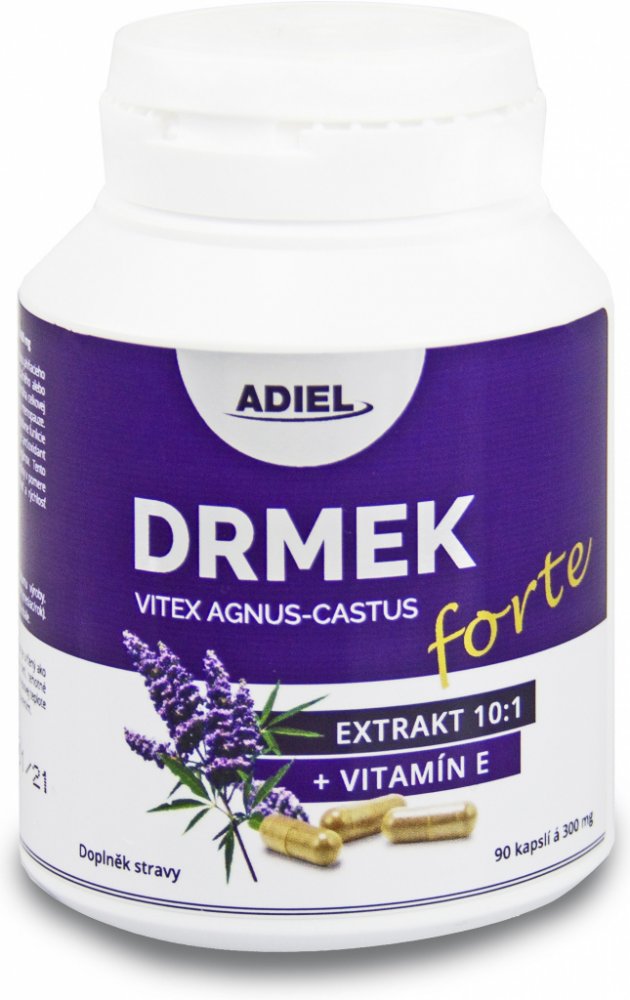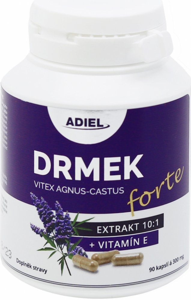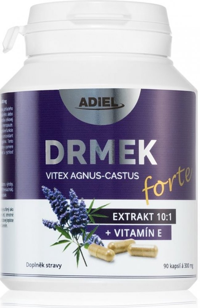 Drmek obecný (Vitex agnus castus) s vitamínem E zajišťuje menstruační komfort ženy, ulevuje při premenstruačním syndromu, vhodný ženám v období menopauzy. Vitamín E je antioxidantem, který přispívá ke správné činnosti kognitivních (poznávacích) funkcí. Jedná se o extrakt z drmku obecného a to v poměru 10:1 v celulózových kapslí, vhodné pro vegetariány a vegany. Balení 90 kapslí představuje kúru na...