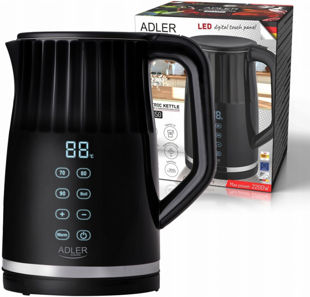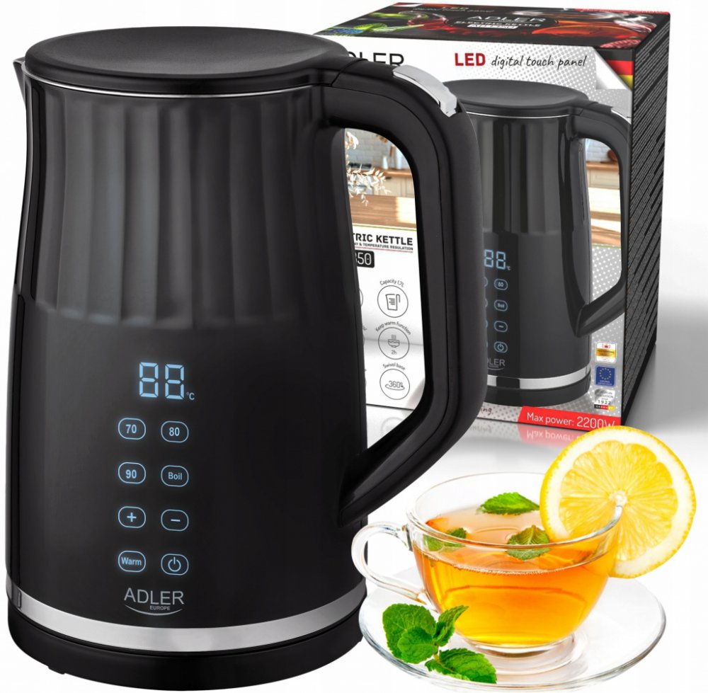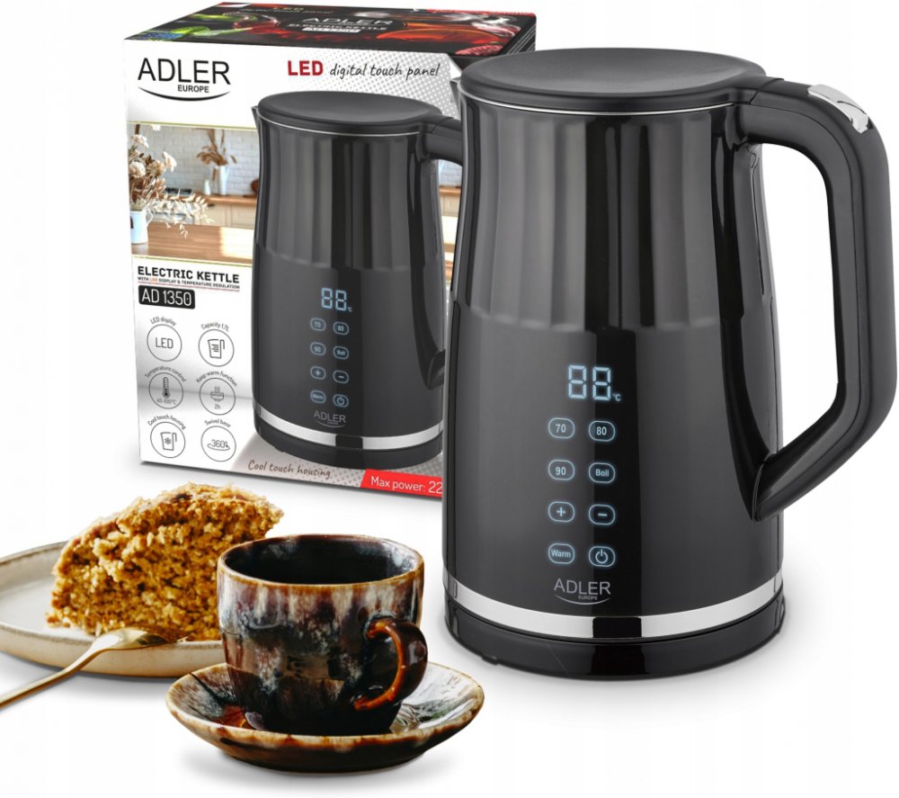 RYCHLOVARNÁ KONVICE NASTAVENÍ °C DOTYKOVÝ DISPLEJ 1,7LModerní rychlovarná konvice Adler AD1350 - Nastavení 40-100C✨NEJDŮLEŽITĚJŠÍ VÝHODY A FUNKCE✨