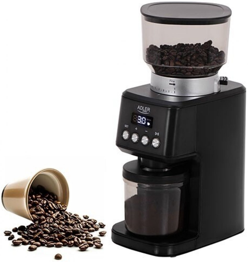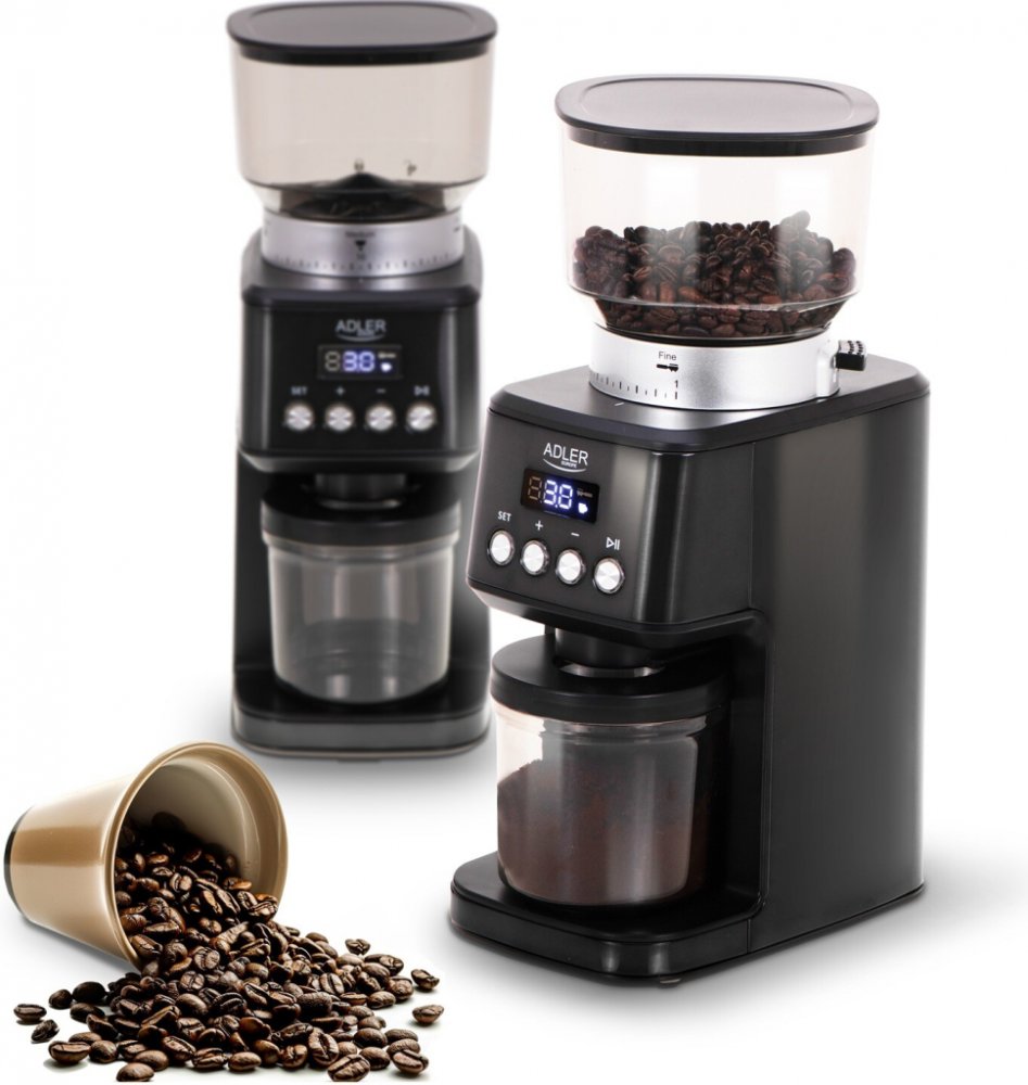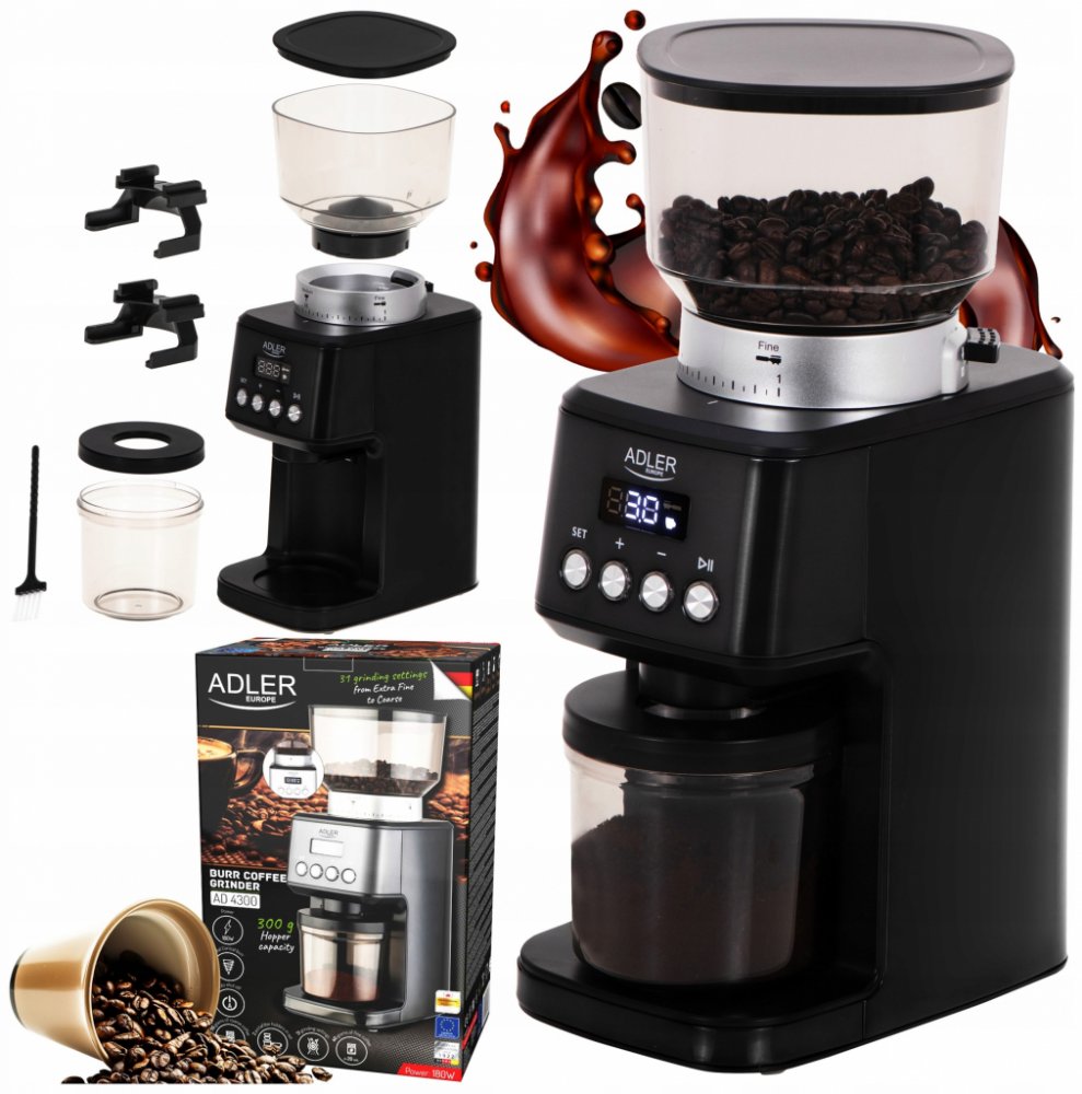 Mlýnek na kávu Adler AD 4300 – Perfektní káva na dosah ruky ☕✨Mlýnek na kávu Adler AD 4300 je vytvořen pro lidi, kteří oceňují vynikající kvalitu mletí přizpůsobenou různým metodám vaření. Díky žárovému mlecímu mechanismu a přesné regulaci chutná každá káva výjimečně.