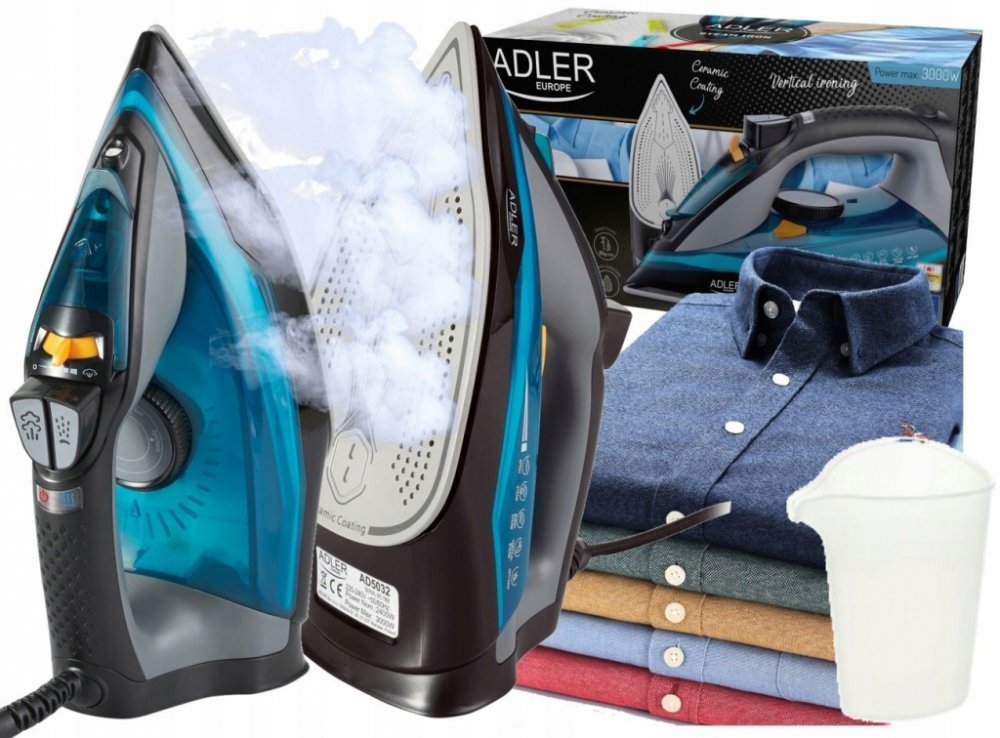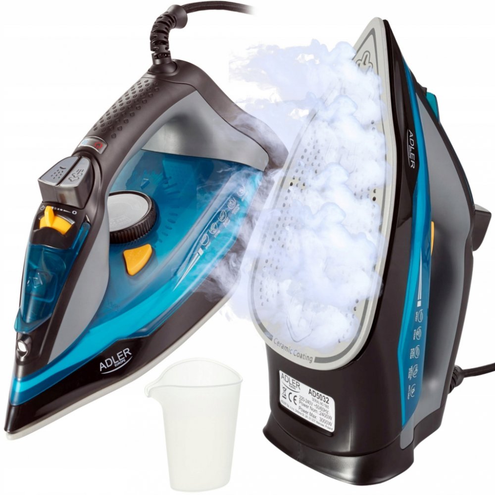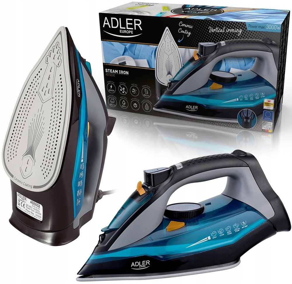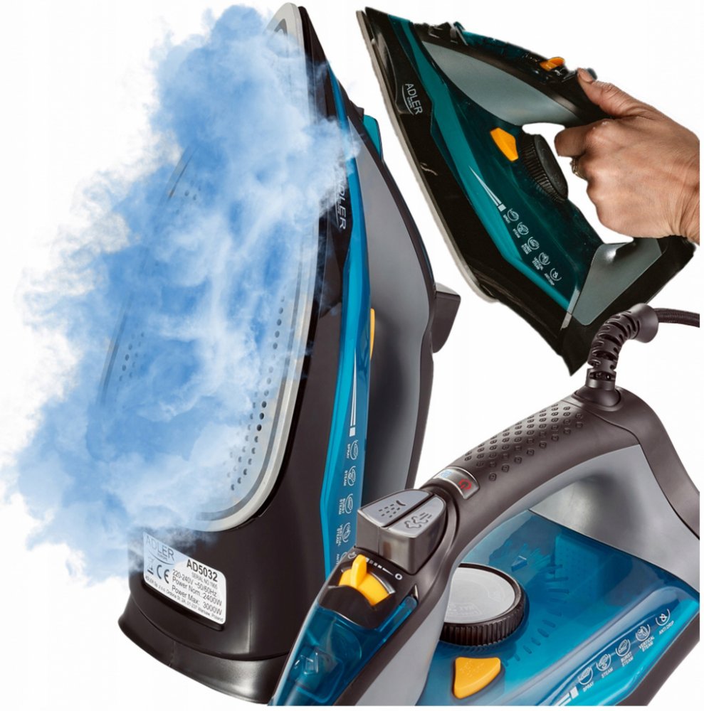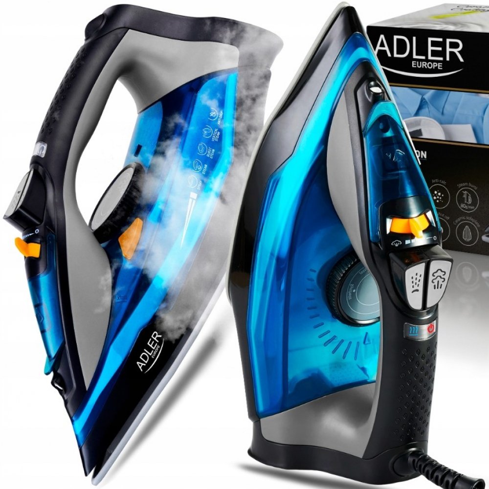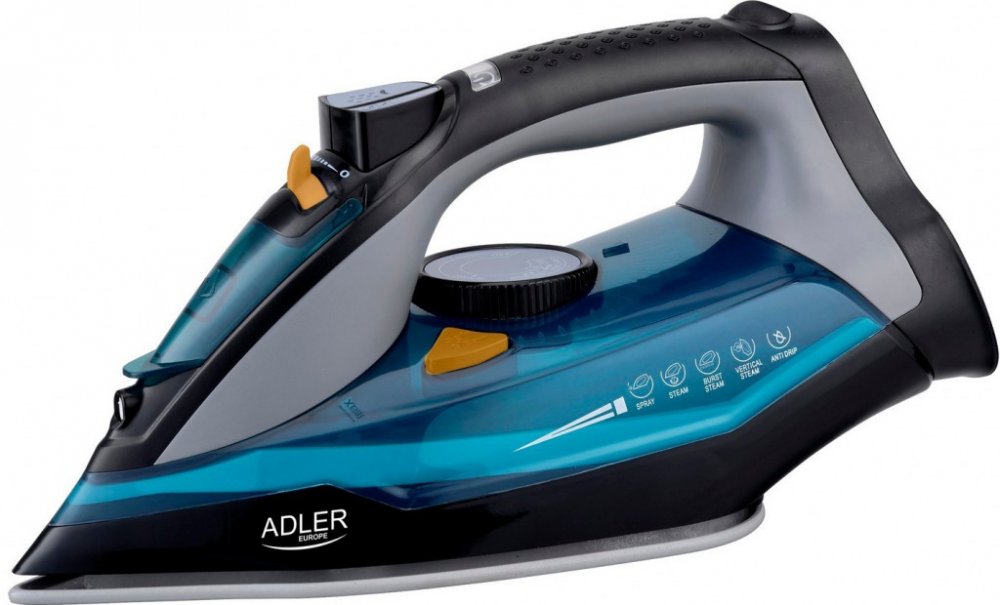 Žehlička na prádlo Adler Steam Iron AD5032 Vás překvapí především svým designem ale to není vše. Žehlička mám funkci samočištění, 350ml nádrž na vodu, anti calc systém a nechybí ani automatické vypnutí při převrácení.