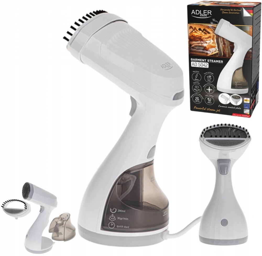 NAPAŘOVAČ ODĚVŮ ŽEHLIČKA PARNÍ STEAMER NA OBLEČENÍ 1500W bílá ADLERParní čistič oděvů – vaše každodenní pohodlí při péči o tkaniny!❇ Nejdůležitější parametry produktu