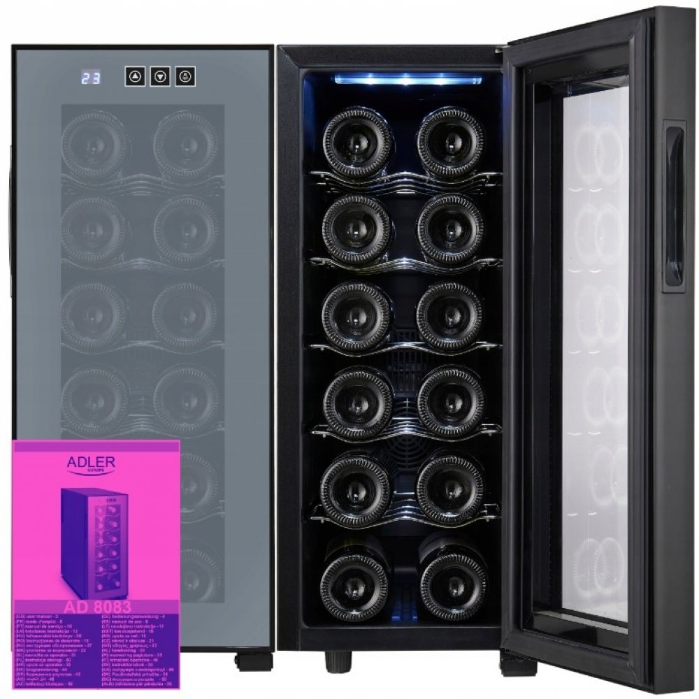 Adler AD 8083 je elegantní chladnička na víno a nápoje, která umožňuje uchovávat lahve ve vhodných podmínkách – tiše, energeticky úsporně a stylově. Uvnitř se nachází komora o objemu 33 litrů a profilované police, které pojmou 12 lahví (po 2 na každé úrovni), takže se lahve o sebe neotloukají a víno může klidně ležet a chladit se při stabilní teplotě. Je to skvělá volba jak do domu, tak i do míst, kde záleží na estetice a pohodlí při servírování – restaurací, barů, hotelů nebo apartmánů.