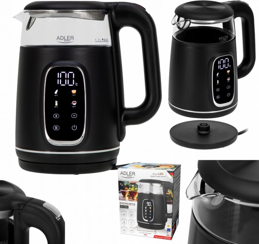 1.7 l 2200 W Adler Europe 0.7 m plastové nerez sklo 1.2 kg 70 - 100 °C černé