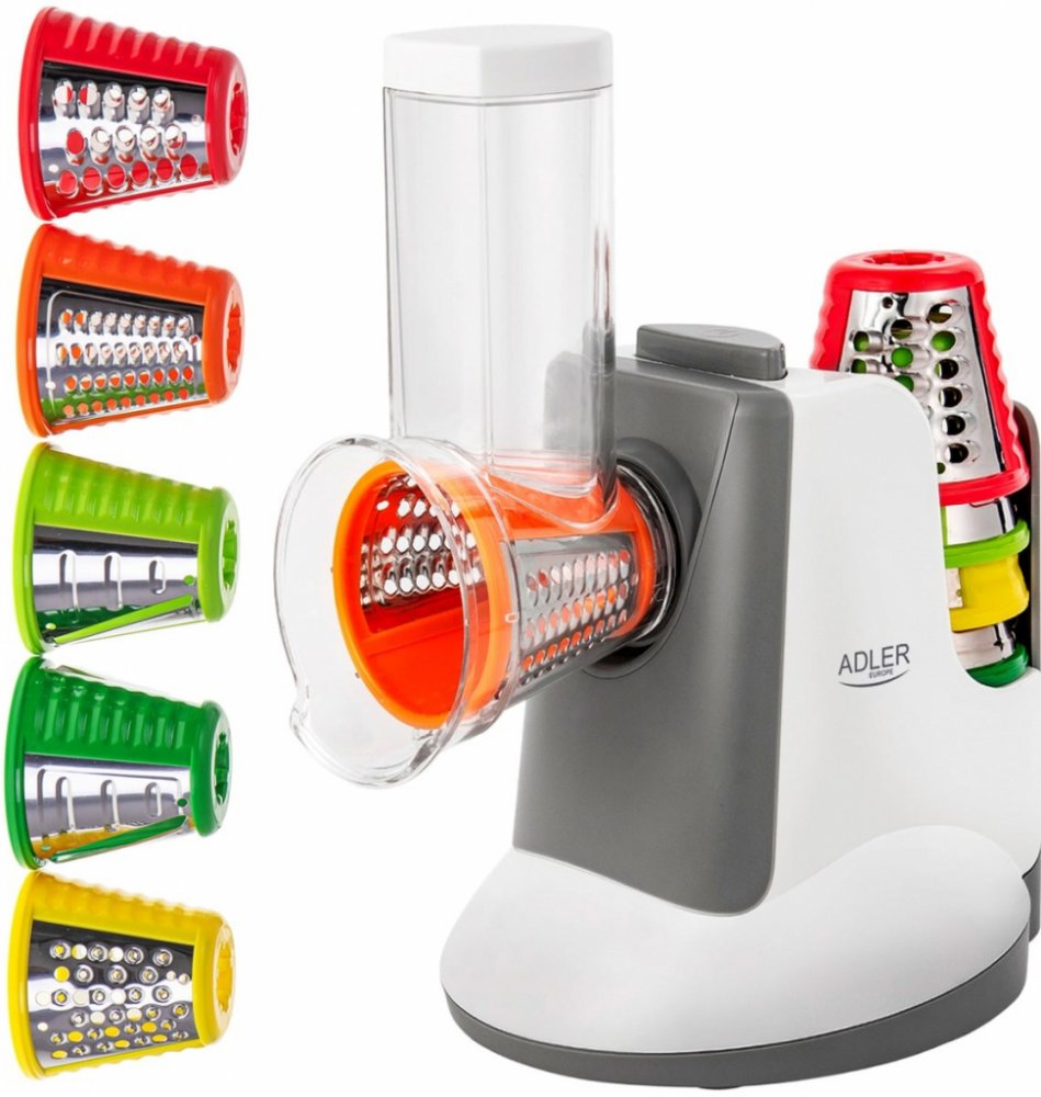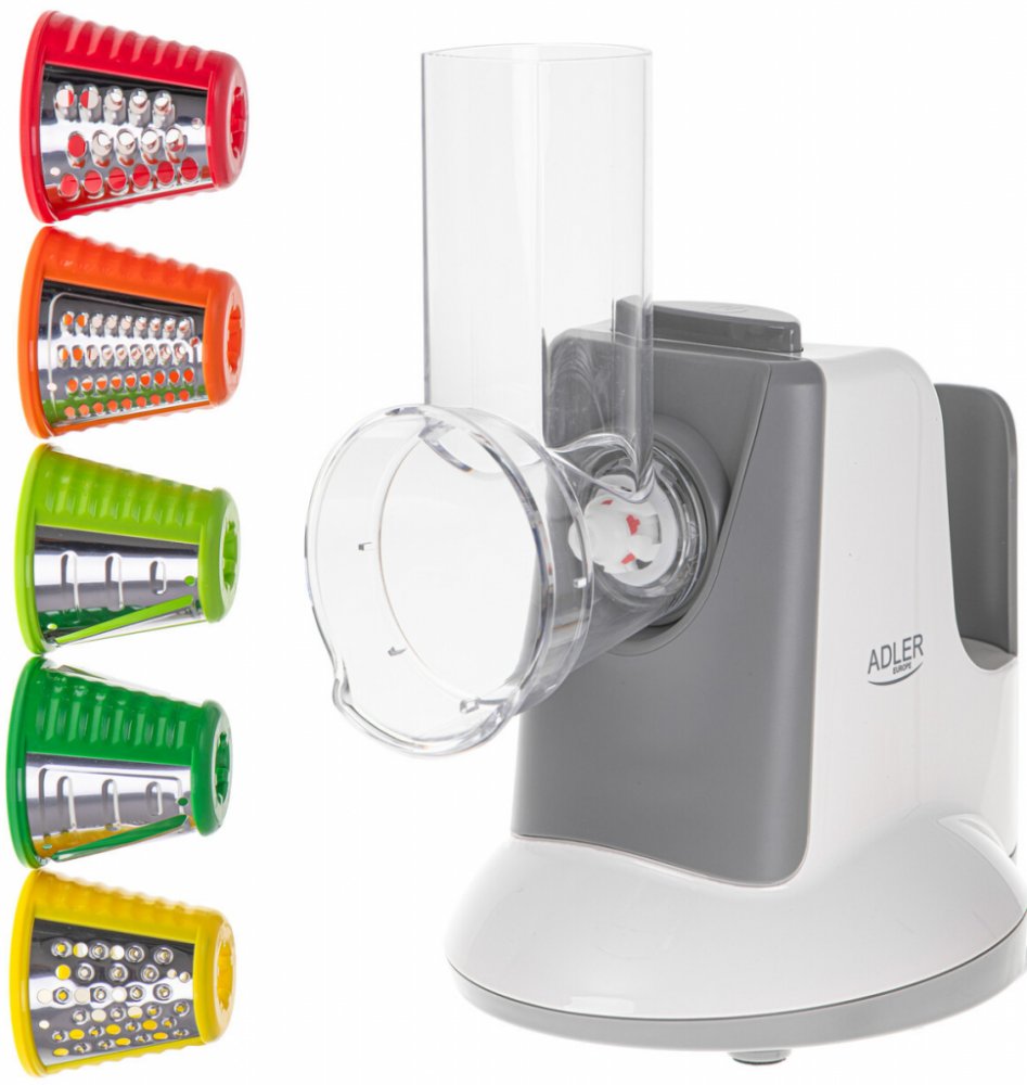 Spotřebič, který vám usnadní přípravu různých pokrmů a ušetří čas v kuchyni. Je vybaven pěti různými nástavci, které vám umožní rychle a přesně krájet, strouhat a sekat různé suroviny. Protiskluzové nožičky zajišťují stabilitu spotřebiče. Pohodlné skladování nástavců díky integrovanému stojanu. Rozměry spotřebiče: 24,8x16,7x29,3 cm. Výkon: 150 W.