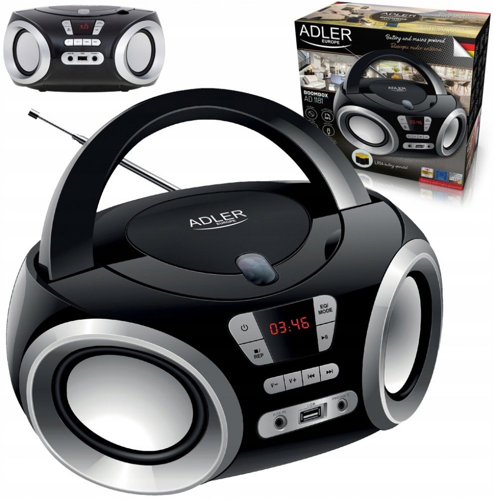 Pokud hledáte přenosné přehrávací zařízení, je pro vás boombox ADLER AD 1181 ideálním produktem. Jednou z největších výhod boomboxu je však skutečnost, že se jedná o přenosné zařízení. Díky bateriovému síťovému napájení na něm můžete přehrávat hudbu doma, ale také během cest na dovolenou. Přehledný LCD displej umožňuje pohodlné ovládání provozu zařízení a tlačítka na přední straně přehrávače umožňují rychlou změnu nastavení. Vestavěný ekvalizér pomůže vyladit zvuky podle našich osobních hudebních preferencí. Zařízení je vybaveno vstupem USB a AUX. Můžeme na něm poslouchat hudbu ve formátu MP3. Teleskopická anténa je užitečná v místech, kde může být problém s pokrytím.Poslech hudby kdekoli a kdykoli je velkým komfortem. Zpříjemníme si tak práci doma, volné chvíle s rodinou a přáteli, cesty na dovolenou nebo hodiny strávené v práci. Pokud hledáte přenosný zábavní systém, je pro vás Boombox ADLER AD 1181 ideálním produktem.Boombox - pohodlí a praktičnost v jednomBoombox je mimořádně praktické zařízení, které se díky nejnovějším inovacím stává stále funkčnějším. Při rozhodování o koupi zvukového systému se vždy vyplatí zkontrolovat výkon zařízení. Ten ovlivňuje, jakou hlasitost budou reproduktory boomboxu generovat. Je to důležité, protože výkon by měl být přizpůsoben velikosti místnosti, ve které budete přehrávač používat. Náš výrobek má dva reproduktory s výkonem 1,7 W každý, takže stačí k poslechu hudby v práci nebo k rozjetí večírku s přáteli. Jednou z největších výhod boomboxu je však to, že je přenosný. Díky napájení z bateriové sítě na něm můžete přehrávat hudbu doma, ale i na cestách na dovolenou. Přehledný LCD displej umožňuje pohodlné ovládání provozu zařízení a tlačítka na přední straně přehrávače umožňují rychlou změnu nastavení. Vestavěný ekvalizér pomůže vyladit zvuky podle našich osobních hudebních preferencí.Přehrávač je pouze funkčníKombinace několika funkcí je nespornou výhodou námi nabízeného výrobku. Rádio FM umožňuje poslouchat oblíbené rozhlasové stanice a být v obraze o novinkách ze země i ze světa. Díky paměti až pro 20 rozhlasových stanic si můžete nastavit své oblíbené programy a rychle mezi nimi přeskakovat, aniž byste je museli nastavovat pokaždé, když chcete změnit stanici. Teleskopická anténa se hodí v oblastech, kde může být problém s pokrytím. Boombox také umožňuje přehrávat soubory MP3 přes USB. Díky této nejmodernější funkci můžete poslouchat svou oblíbenou hudbu a alba svých oblíbených interpretů, aniž byste s sebou na cesty na dovolenou museli vozit množství CD. Pokud však oceníte zvuk z tradičního kompaktního disku, máte možnost přehrávat i ten. Sluchátkový výstup vám umožní poslouchat hudbu, aniž byste rušili členy rodiny. A vstup AUX vám umožní připojit další zdroje hudby, například chytrý telefon nebo tablet.