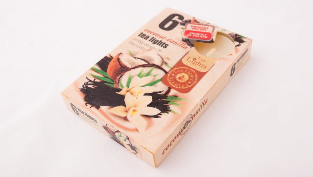 Doba hoření 3-4 hod. Vychutnejte si romantickou a relaxační chvilku s elegantními svíčkami s vůní kokosu a vanilky. Béžové čajové svíčky v hliníkovém kalíšku. Prodávané po 6 ks v papírové krabičce s rozměry 8 x 12 cm.