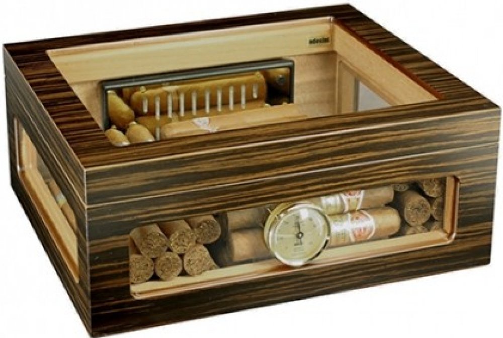 Humidor Adorini Treviso patří mezi jeden z mála humidorů značky Adorini s prosklenými stěnami. Prosklené je horní víko a boční stěny, přes které je dobře vidět obsah interiéru. Povrch humidoru je v přírodní, dřevěné barvě s decentní texturou. Jedná se o humidor střední velikosti ideální pro domácnosti či kanceláře.