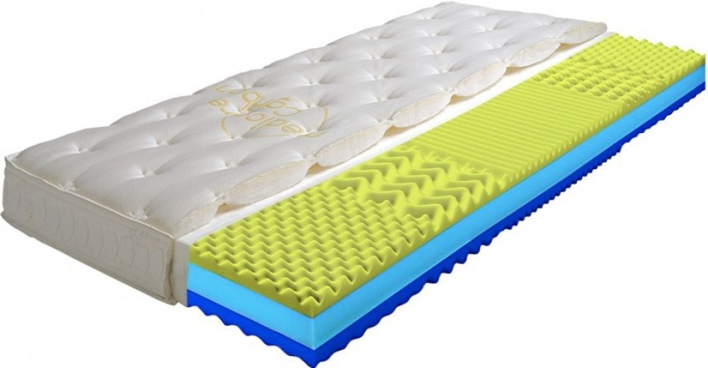 Nosnou střední část jádra tvoří kvalitní polyurethanová pěna o zvýšené nosnosti. Z jedné strany je ložná plocha tvořena viscoelastickou „paměťovou“ pěnouVISCOFOAM® – tento ma...