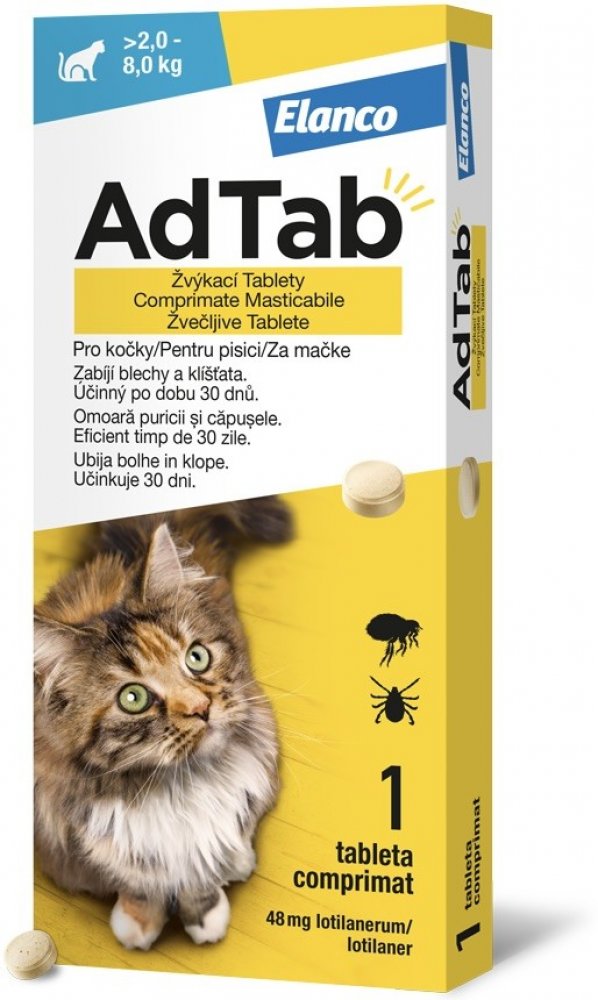 AdTab 48 mg žvýkací tablety pro kočky 2-8 kg 1 tbl