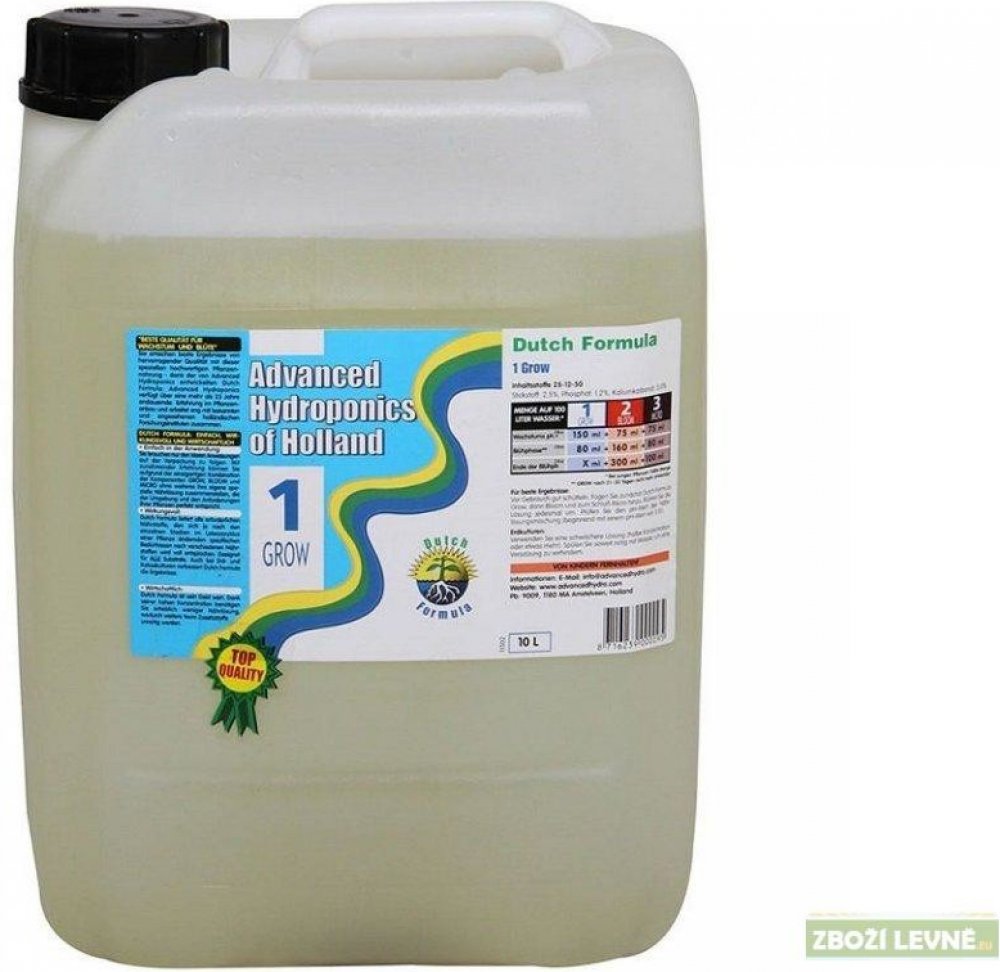 - Nejlepší kvalita pro růst rostlin. Díky tomu, že Advanced Hydroponics vyvinuli Dutch Formula, dosáhnete i Vy s tímto speciálním vysoce hodnotným hnojivem nejlepších výsledků a vynikající kvality.