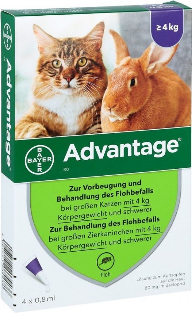 - Advantage spot-on je vhodný k léčbě a prevenci napadení blechami pro kočky a králíky nad 4 kg.