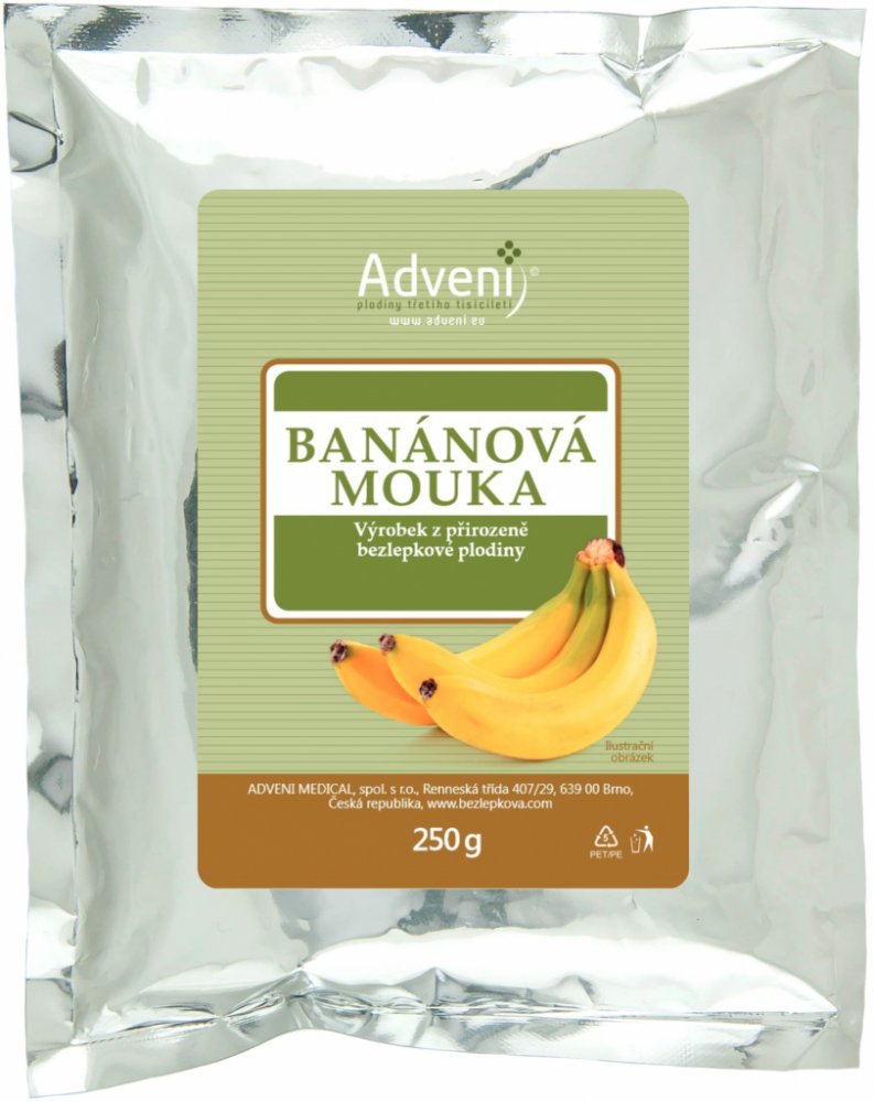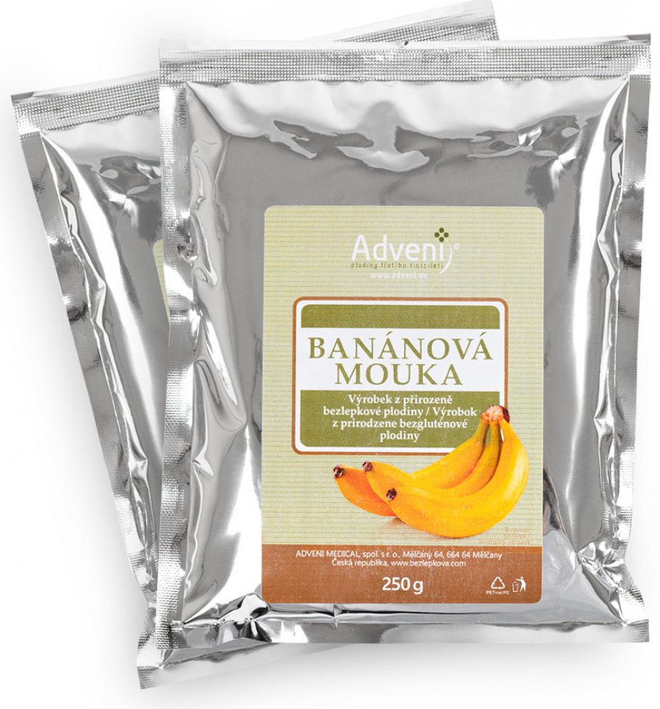 Banánovou mouku je možné použít v kombinaci s univerzální nízkoškrobovou směsí bez kukuřice BAKE-A-CAKE nebo také se směsí SIMPLY ADVENI.