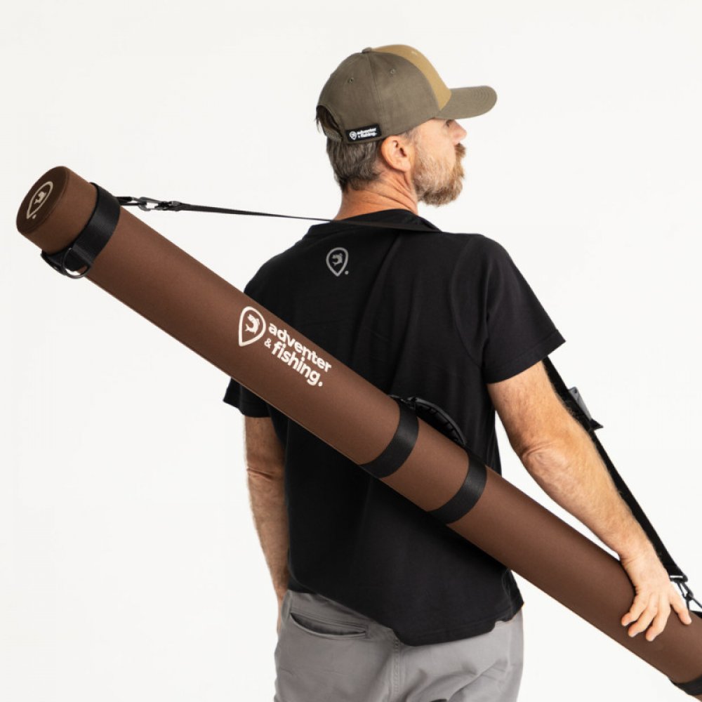 Třívrstvý obal na pruty v hnědé barvě Brown s bílým vyšívaným logem Adventer & fishing je skvělým řešením pro ochranu vašich rybářských prutů. Tento obal kombinuje odolnost, funkčnost a možnost personalizace.