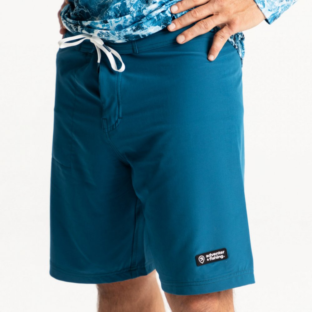 Pánské kraťasy Adventer & fishing v petrolejově modré barvě Petrol s šedým logem jsou určené především pro rybaření v teplých krajinách.
