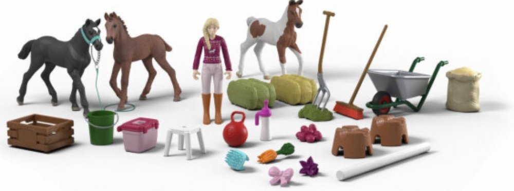 Adventní kalendář HORSE CLUB od Schleich® skrývá za každými dvířky překvapení, které milovníky koní nadchne. Vánoční zázrak – odchov hříběte ukrývá v každém okénku roztomilé vánoční překvapení. Velmi netrpělivě se očekává příchod tří hříbat, která jsou exkluzivně k dispozici v kalendáři. Vše, co Sarah na Lakeside potřebuje pro chov hříbat, najde v kalendáři: dudlík, ohlávku, pytel ovsa, seno, kolečko a mnoho dalšího. Kdo jí pomůže s prací? Adventní kalendář obsahuje tři hříbata (holštýnské, hannoverské, fríské), figurku Sarah s příslušenstvím pro krmení, péči a hru, včetně krmiva, nářadí, ozdob a překážek. Adventní kalendář Schleich® patří do tematického světa HORSE CLUB a je vhodná pro děti od 4 let.