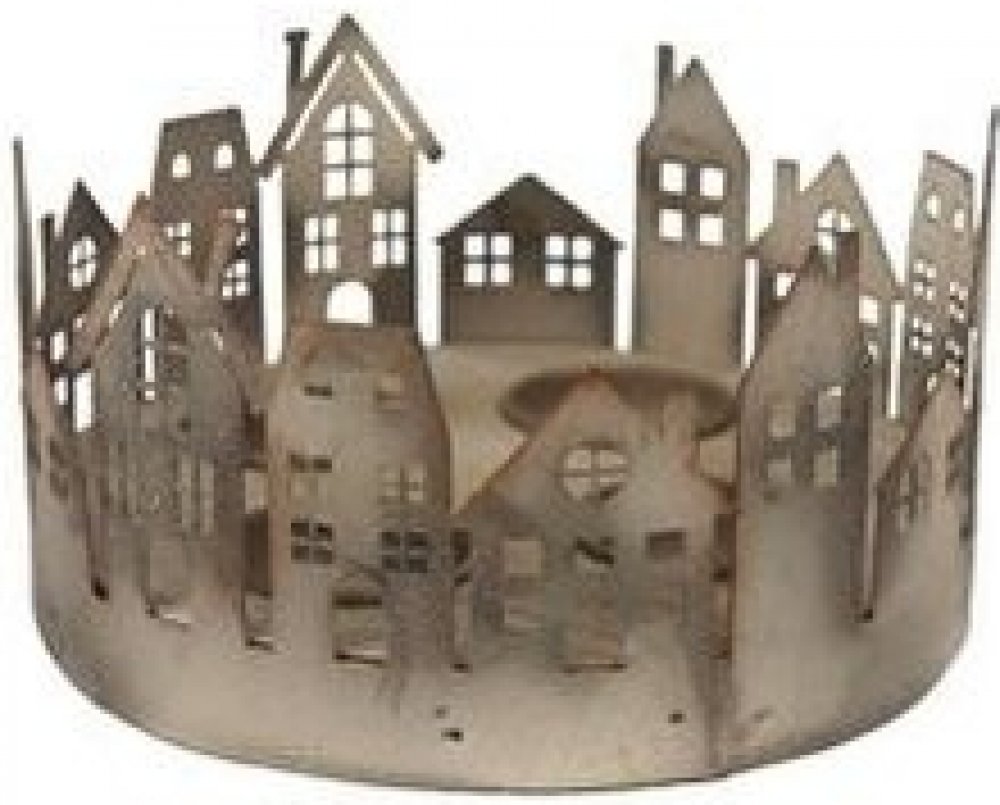 Dekorační adventní svícen.\nRozměry : průměr 16 cm, výška 8,5 cm.\nBarva : hnědo zlatá.\nMateriál : kombinace kov, dřevo.\n