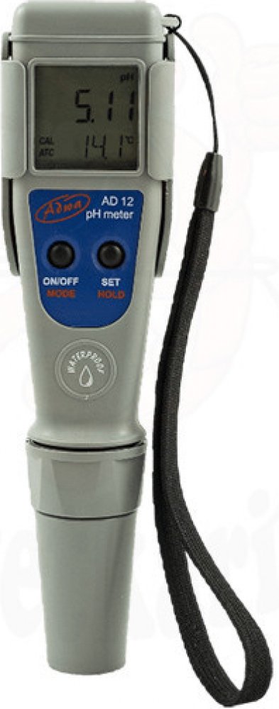 Adwa AD12 je kvalitní mikroprocesorově řízený, přenosný pH metr se zabudovaným měřením teploty a automatickou teplotní kompenzací. Tester disponuje dvouřádkovým displejem, na kterém lze pohodlně sledovat aktuální teplotu a pH roztoku. Přístroj je zabezpečen proti vodě a vlhkosti, ale nedoporučujeme nechávat přístoj trvale plavat ponořený v kapalině. Mezi další výhody patří dvoubodová automatická kalibrace, funkce HOLD, indikátor stability měření i stavu baterií a v neposlední řadě i vyměnitelná sonda.