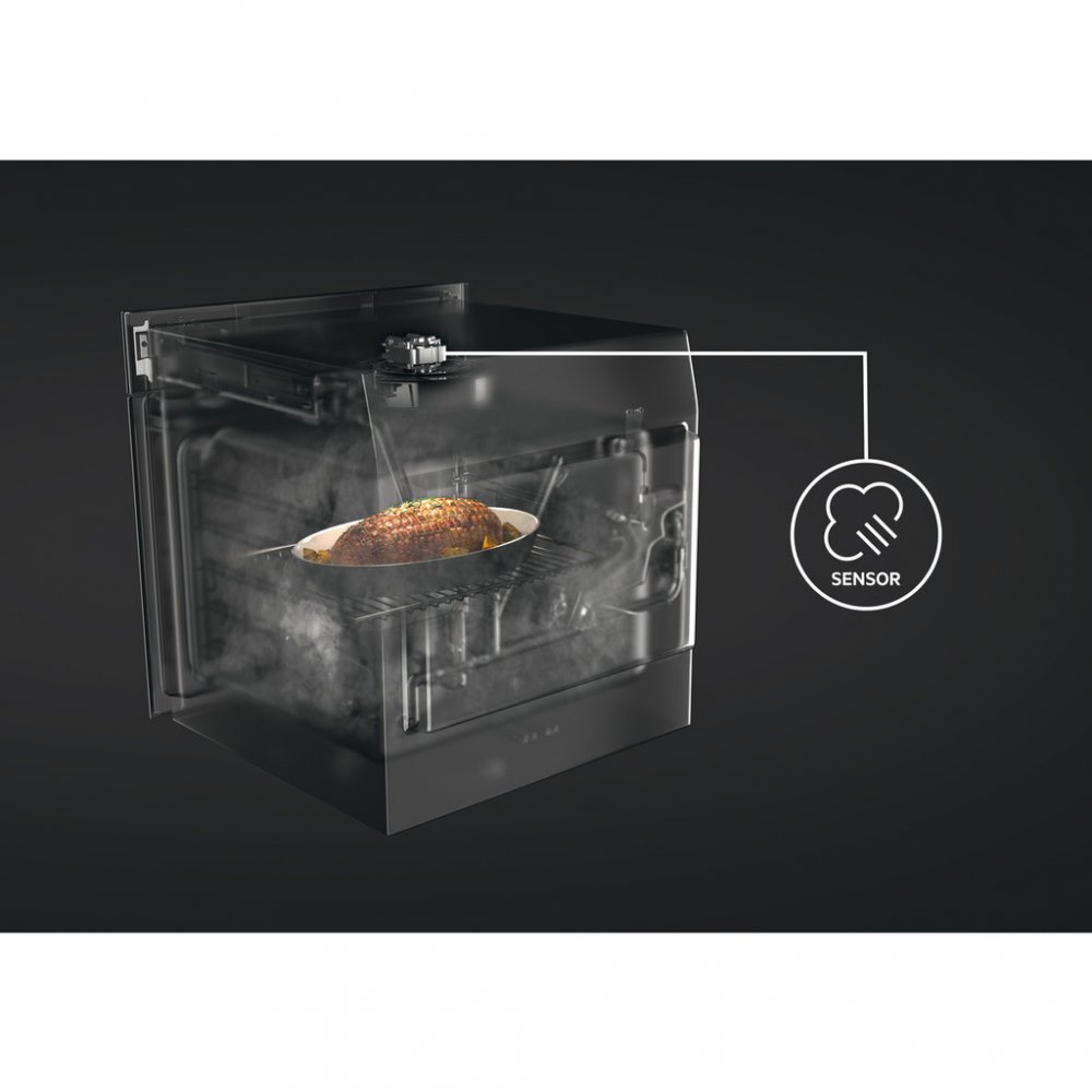 Pokročilý senzor vlhkosti, který je součástí této trouby, automaticky nastaví správné množství páry, čímž zajistí šťavnatou texturu a intenzivní chuť jídla.