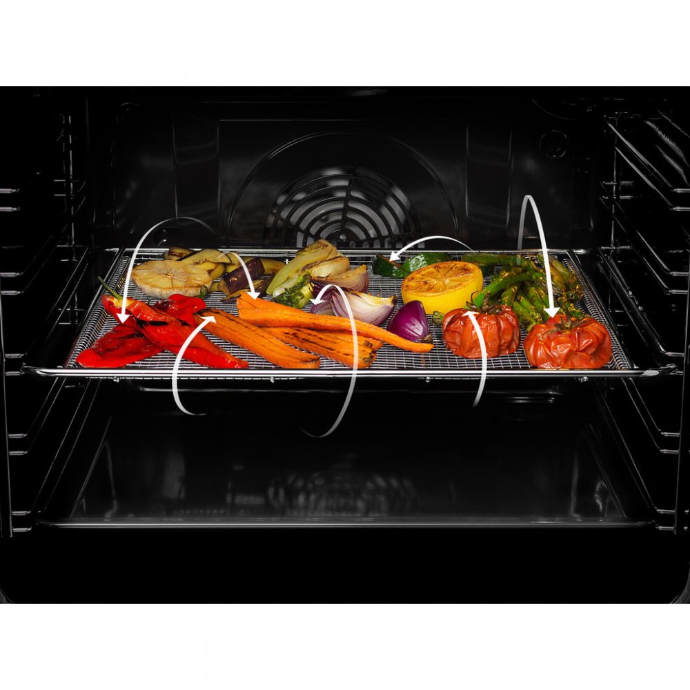 Dopřejte si křupavé krokety, hranolky nebo zeleninu s troubou AirFry. Malé otvory v plechu umožňují horkému vzduchu péct pokrmy ze všech stran. Pro delikátní smaženou texturu bez potřeby oleje.