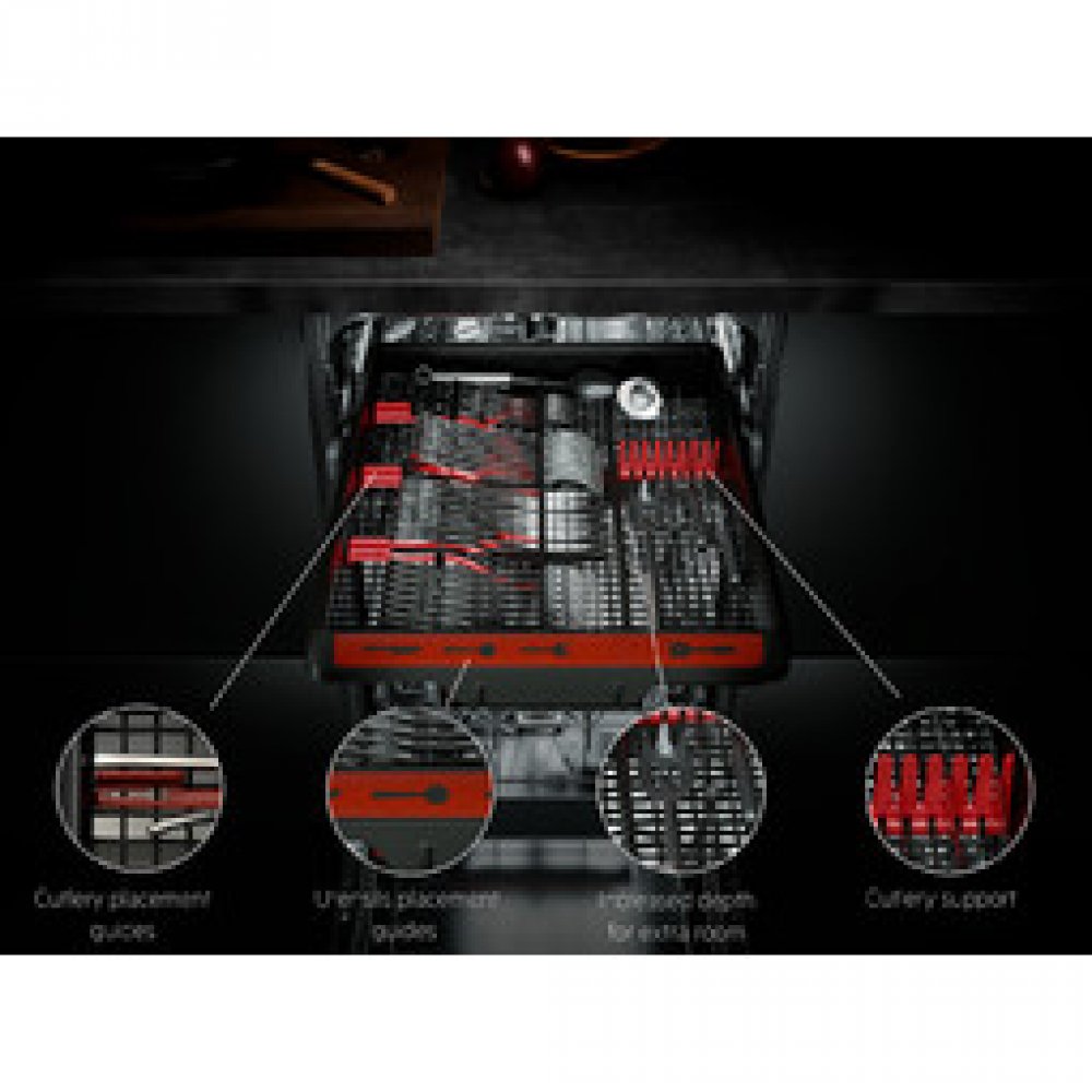 Zásuvka MaxiFlex pojme všechny druhy náčiní. Od několika sad příborů po náčiní nadměrné velikosti. Flexibilní dělicí příčky umožňují úpravu každé náplně. Ploché náčiní se uloží odděleně od velkých kusů a přidaná hloubka zvyšuje kapacitu každého cyklu. Maximálně účinné a pohodlné mytí.
