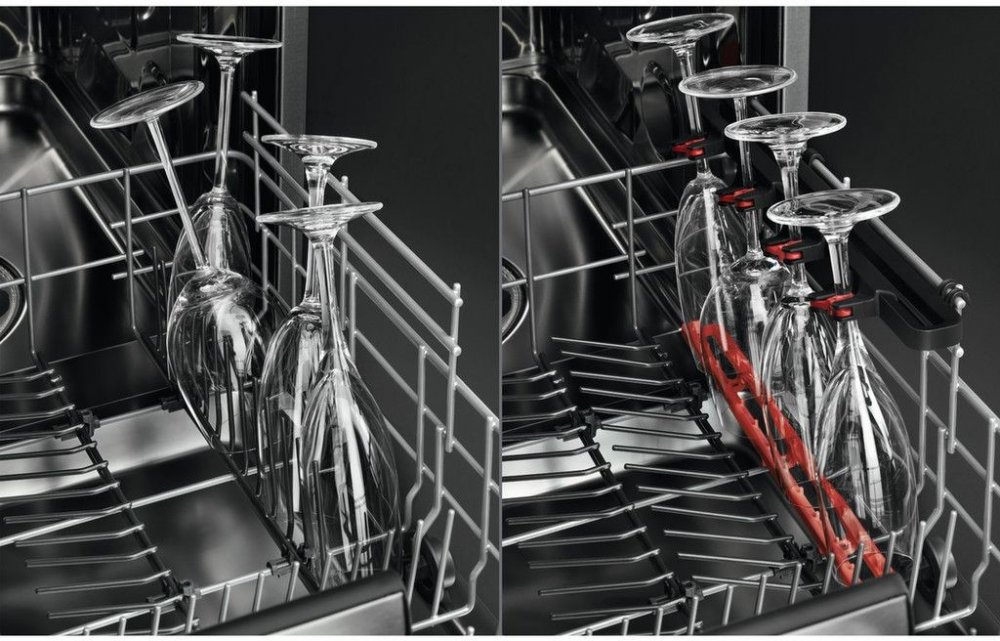 O křehké nádobí bude postaráno s maximální péčí. Držáky SoftGrips a SoftSpikes jsou navrženy tak, aby křehké skleněné nádobí bezpečně drželo na svém místě a nepoškodilo se.