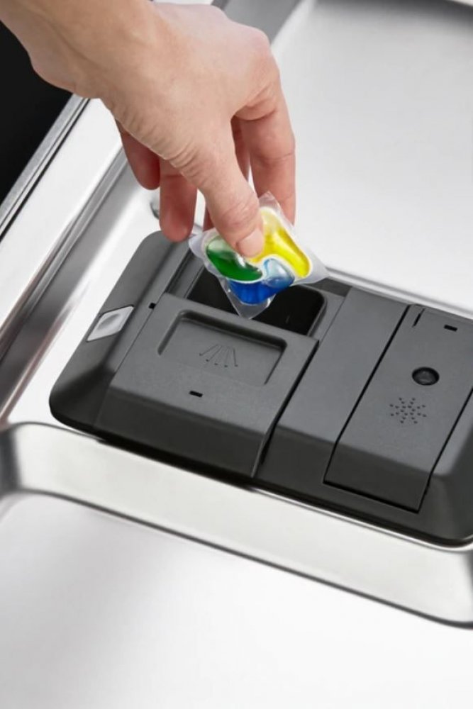 Kapacita mytí dosahuje až 14 jídelních souprav. K dispozici je 7 programů a 3 teploty. Zvolte například program pro mytí na 160, 90 a 60 minut, obvyklý Eco program nebo Rychlý 30 minutový program. Speciální program Machine Care pomůže udržet myčku čistou a zamezí tvorbě vodního kamene. Díky vodnímu senzoru, který si pohlídá tvrdost a čistotu vody, je upravena spotřeba čisticích prostředků. Výškově nastavitelný horní koš obsahuje skládací poličky na šálky a dolní košík umožňuje rozložit 2 talířové poličky.
