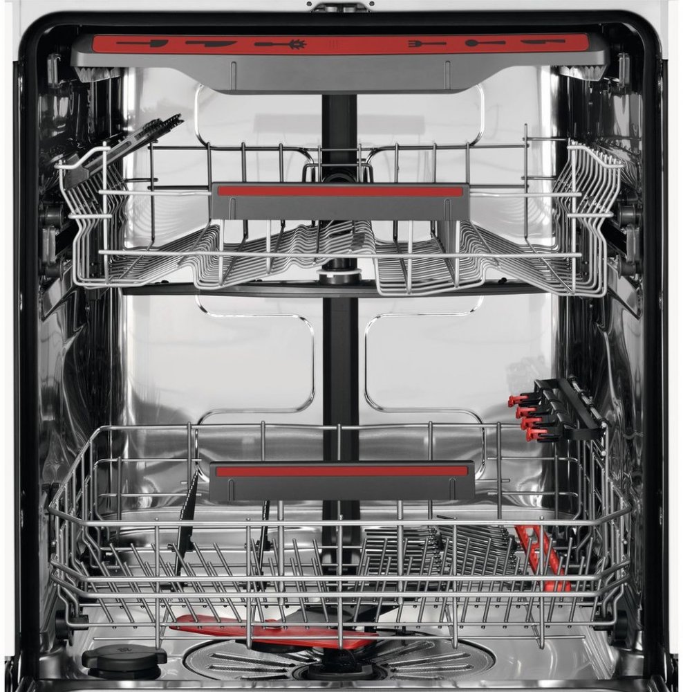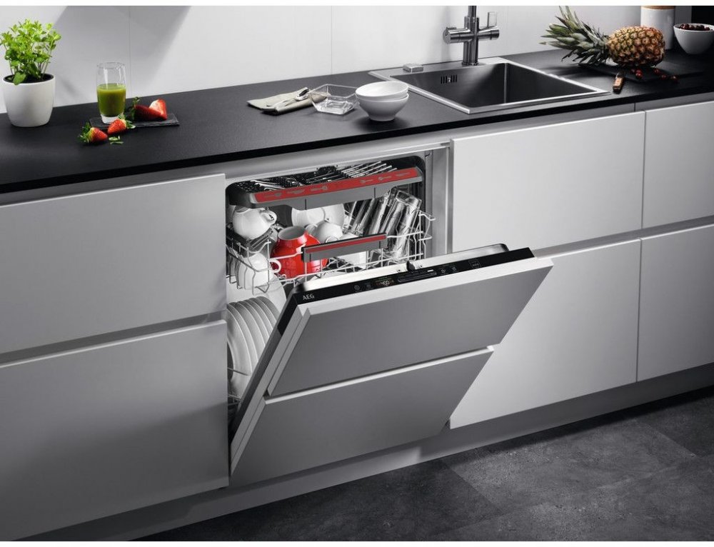 Nezatěžujte své ruce mytím nádobí, když práci může zastat pomocník k tomu určený – myčka nádobí. Patřičný lesk a čistotu dodá vašemu nádobí myčka nádobí AEG Mastery FSB53927Z. Tuto plně vestavnou myčku schováte do designu vaší kuchyňské linky. Ovládání je integrované ve vnitřní straně dvířek. Maximální životnost, velmi tichý chod pouhých 42 dB a energetickou třídu A+++, to vše skrývá myčka díky invertorovému motoru s příkonem 1 950 W.