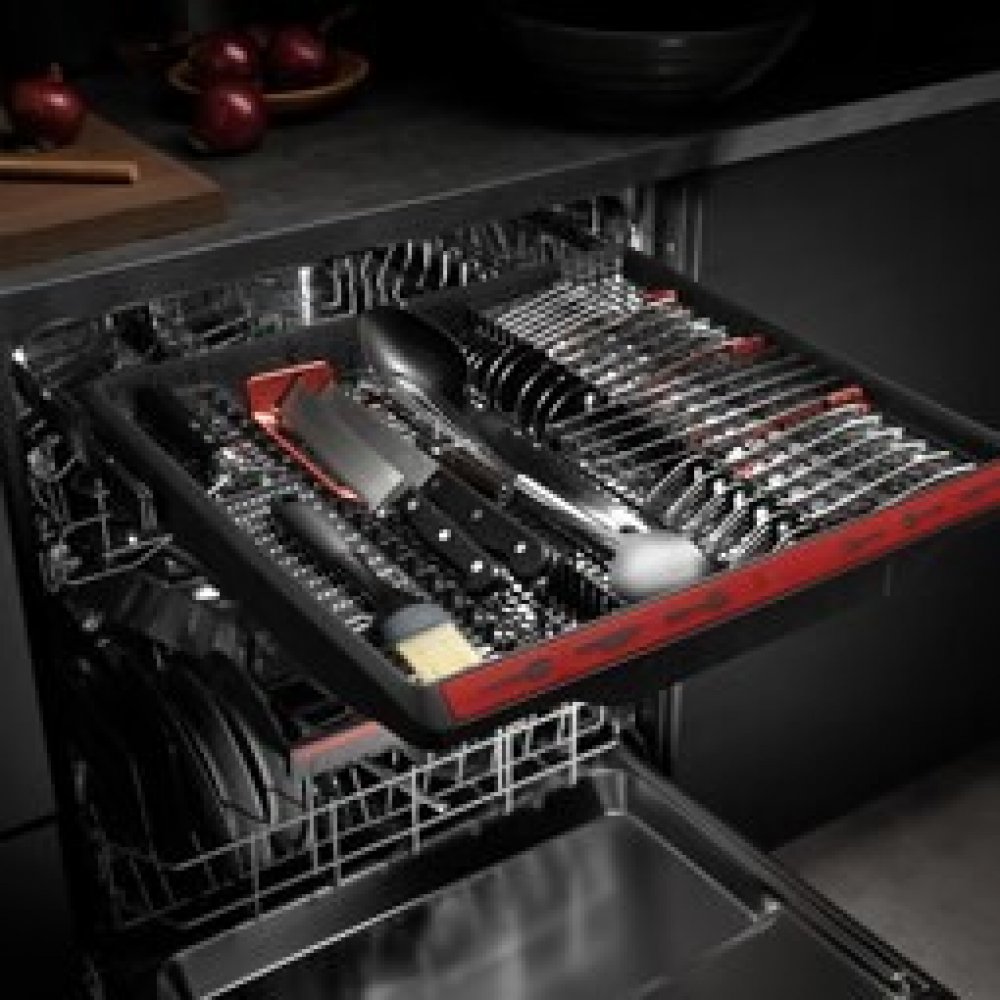 Zásuvka MaxiFlex je navržena pro příbory a náčiní rozmanitých velikostí a tvarů. Díky flexibilním dělicím příčkám a přidané hloubce si ji lehce přizpůsobíte podle potřeby. Snadno pojme a umyje většinu nádobí najednou, i když jde o náčiní jako jsou vařečky, naběračky nebo šlehací metly.
