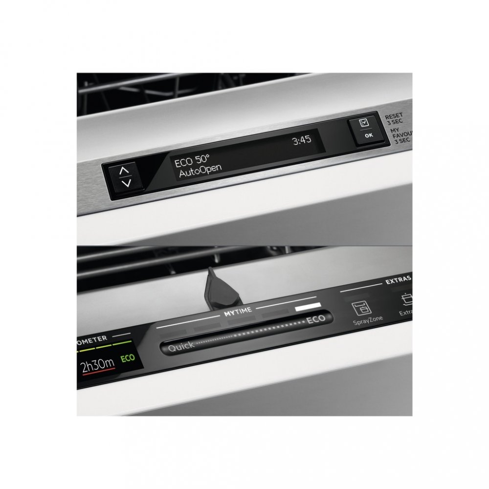 Indikace funkcí: budík, zpožděný start 1-24h, extra tichý, GlassCare, indikátor pro leštidlo, sůl, Time beam White, XtraPower - extra silný