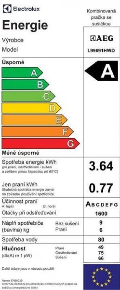 Spotřeba energie při praní a sušení (kWh) 3.64