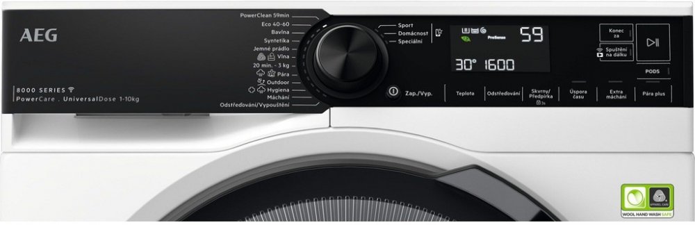 - Prací programy: PowerClean 59min, Eco 40-60, bavlna , syntetika, jemné prádlo, vlna , 20 min. - 3 kg, pára, outdoor, Hygiena, máchání , odstřeď./vypouštění