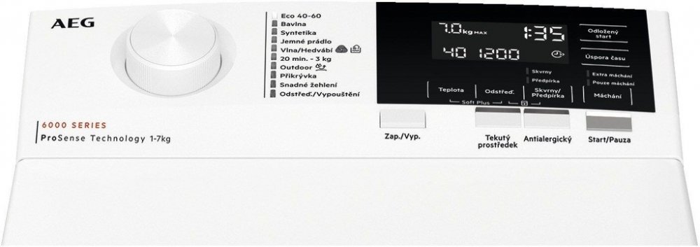 - Technologie ProSense®, kterou jsou vybaveny pračky AEG s vrchním plněním, zváží každou náplň a podle toho nastaví optimální délku cyklu pro důkladné vyprání. Pračka tak zachovává co nejlepší vzhled vašeho oblečení a díky kompaktnímu provedení optimálně využívá prostor.