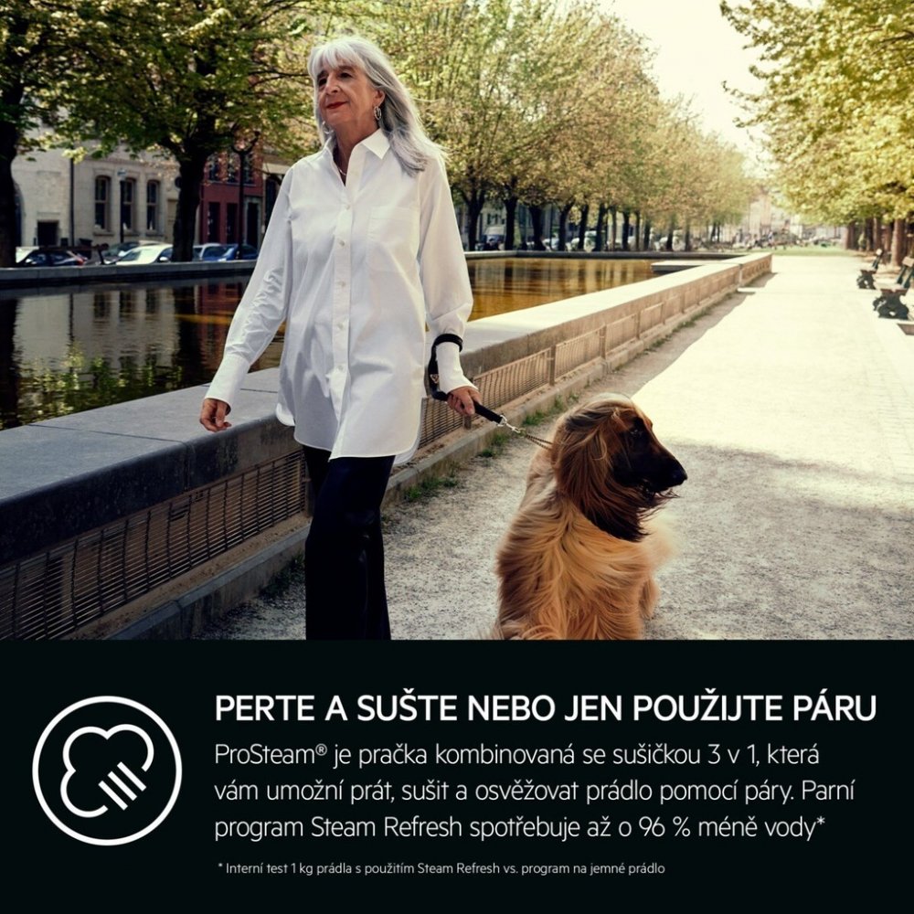 Pračka kombinovaná se sušičkou 7000 ProSteam® je spotřebič 3 v 1, který zefektivňuje proces péče o prádlo pomocí programů praní, sušení a pára. Pára spotřebuje o 96 % méně vody a je šetrnější než praní. Vaše oblečení vydrží déle jako nové.