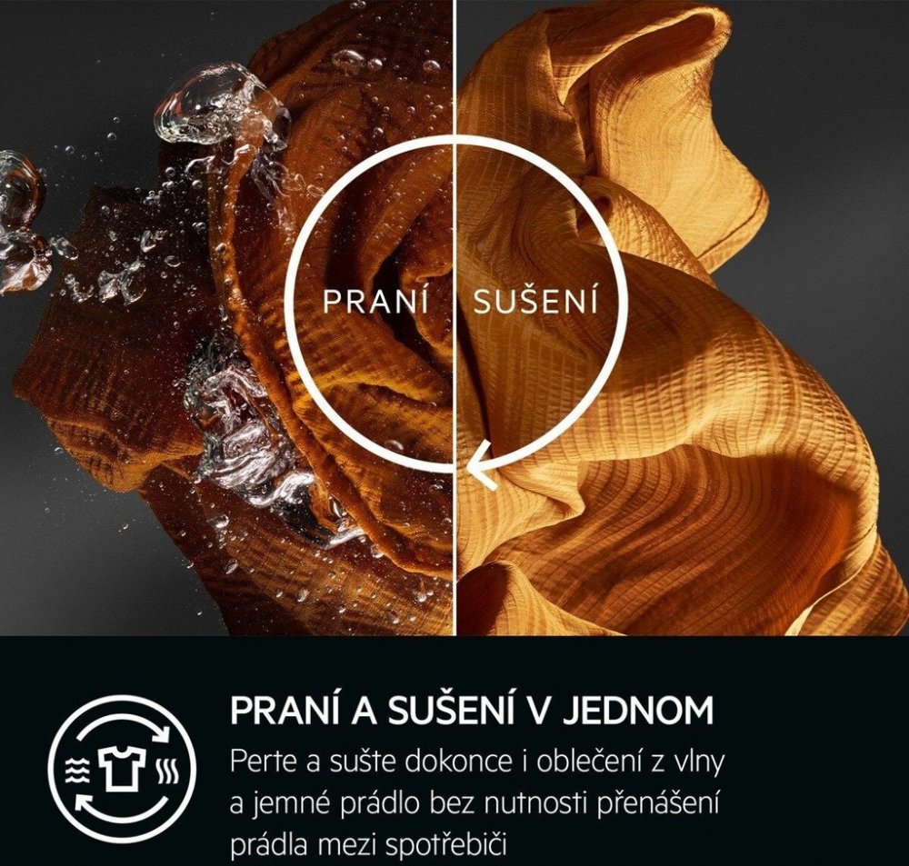 pračka se sušičkou • energetická třída A/D • 8 kg prádla pračka / 5 kg prádla sušička • maximální hlučnost 76 dB • 1600 ot/min • rychlý program • invertorový motor • Woolmark Blue • velký dotykový displej • funkce PowerClean • technologie Wash-to-Dry • UniversalDose pro použití pracích kapslí • mobilní aplikace My AEG Care • Steam Refresh • využití páry • 4 nastavitelné nožky • ochrana proti přepě...