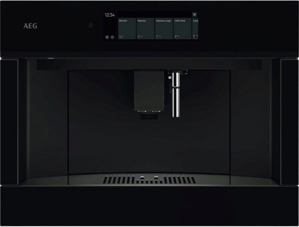 AEG lesklá černá 2.5 l dotykové pro 3-4 osoby s integrovanou nádobou na mléko 15 bar 350 g dotykový displej s nádržkou na vodu 24 kg 45.6 cm 59.5 cm 45 cm velké standardní