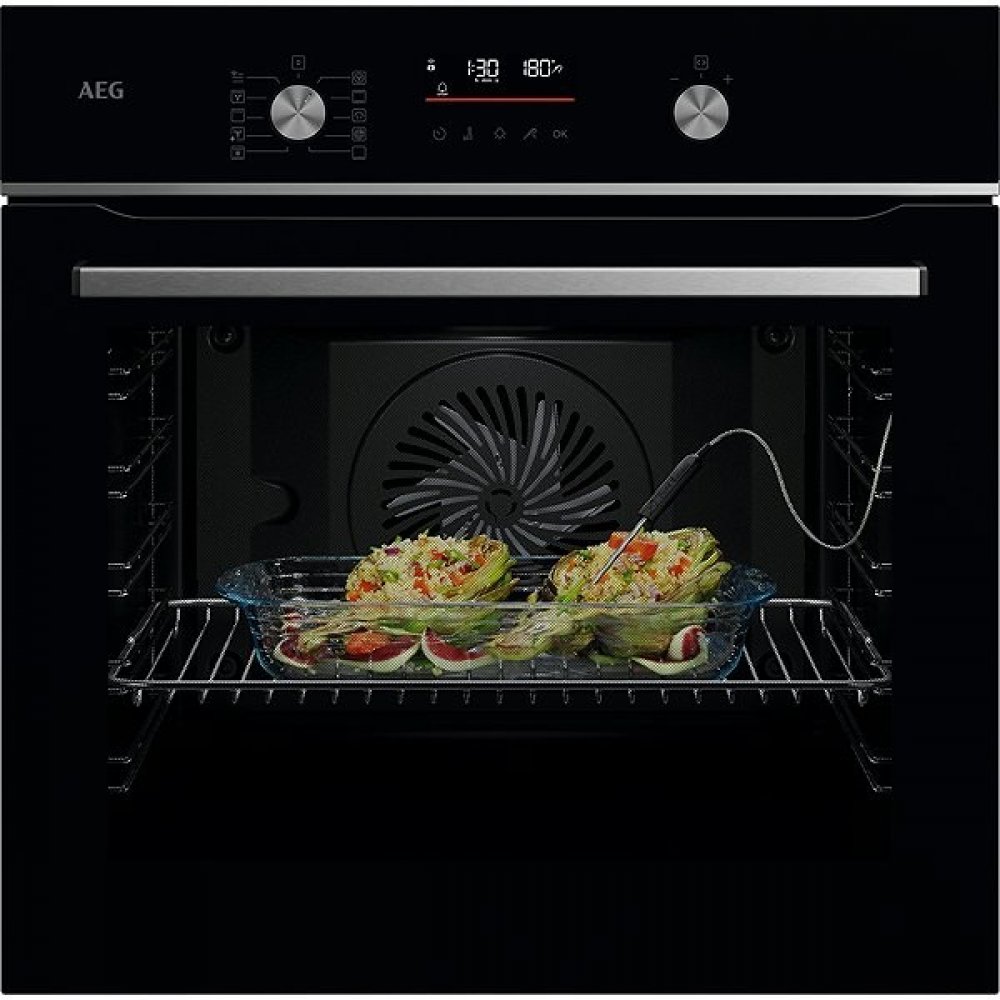 Dokonalá příprava jídlaVestavná trouba AEG 5000 SurroundCook SteamBake OA5PB531ABVestavná trouba AEG série 5000 SurroundCook SteamBake OA5PB531AB využívá kombinaci páry a horkého vzduchu pro perfektně upečené pokrmy: křupavou kůrku, šťavnatý střed a rovnoměrné pečení bez nutnosti otáčení plechu. Díky funkci SteamBake, teplotní sondě, konektivitě Wi-Fi a intuitivnímu ovládání nabízí profesionální výsledky i v domácí kuchyni. SteamBake Vaření s konektivitou Víceúrovňové pečení Teplotní sonda Funkce SteamBake – nejlepší výsledky při pečeníSteamBake umožňuje při pečení přidat páru, která napomáhá křupavé kůrce a šťavnatému vnitřku pokrmu. Rovnoměrné rozložení teploty znamená, že nemusíte plechy otáčet ani přesouvat. Teplotní sonda – přesná kontrola teplotyS teplotní sondou můžete sledovat teplotu uvnitř...