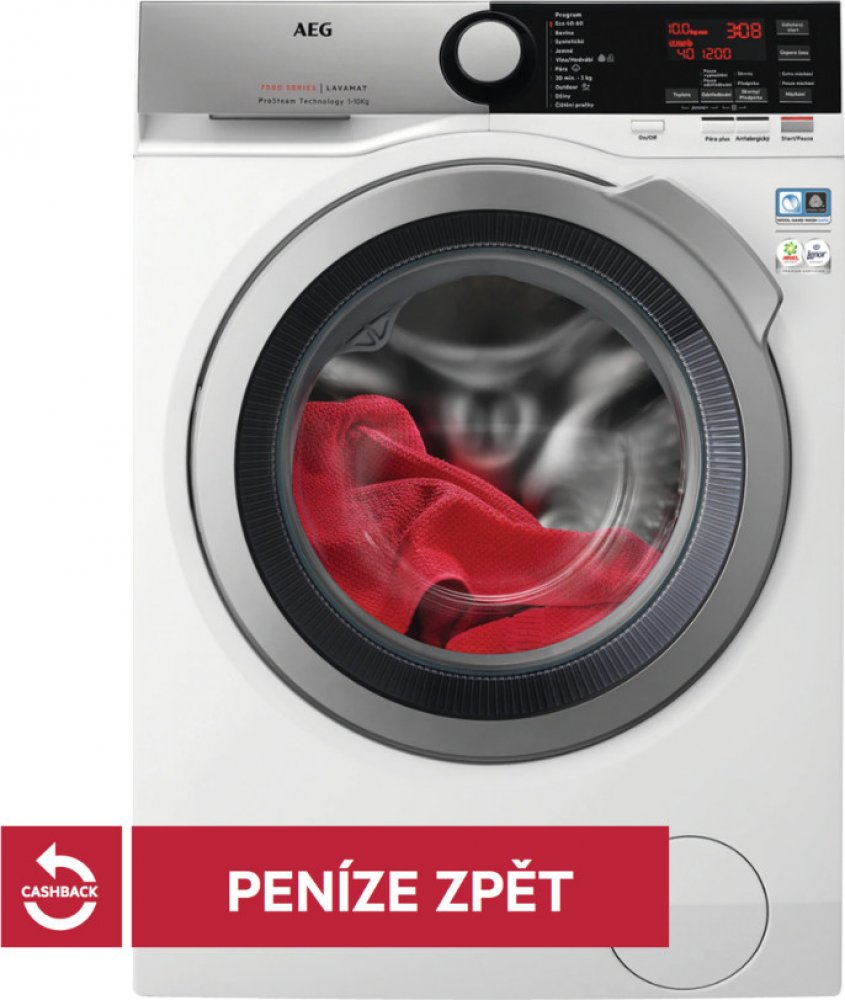• Funkce: zap./vyp., pára, antialergické, start/pauza, výběr teploty, výběr otáček, skvrny/předpírka, máchání, úspora času, odložený start