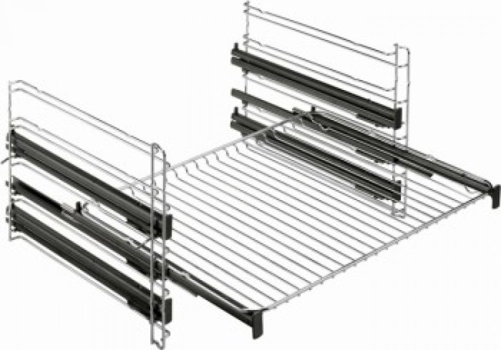 Naše teleskopické výsuvy s nepřilnavým povlakem činí přípravu jídel ještě snazší. Nyní můžete rošty pohodlně vytáhnout. Bezpečné zajištění jim brání v překlopení nebo vysunutí ven. Snadno se naklapnou do stávajících úrovní. Díky tomu budete mít obě ruce volné k pečení či kořenění. 3 úrovně.