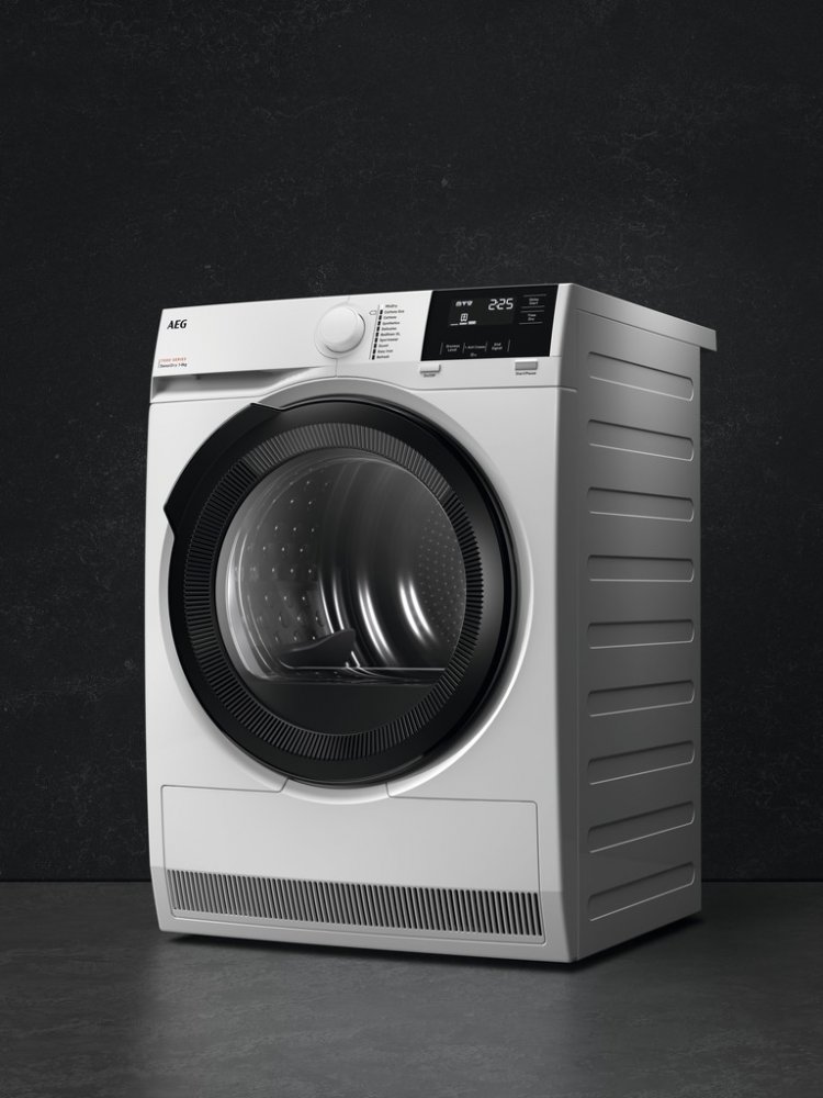 AEG volně stojící kondenzační 8 kg 66 dB 10 B pro 3–4 osoby s nádržkou na kondenzát pro technickou místnost (nad 65 dB) 1.93 kWh otočný knoflík s tlačítky 85 cm 59.6 cm 66.3 cm