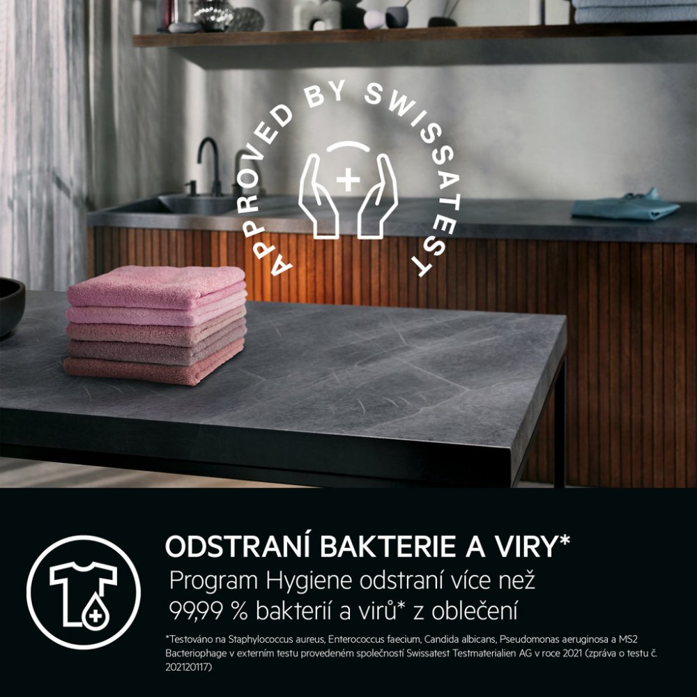 Speciální programy: 3 kg Quick, Bedlinen XL, Cotton Eco, Cottons, Delicates, Down jacket, Duvet, Hygiene, MixDry, Outdoor, Synthetics, Wool