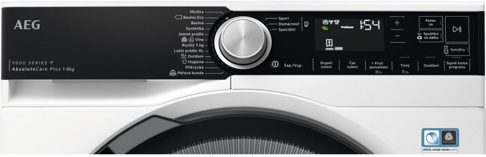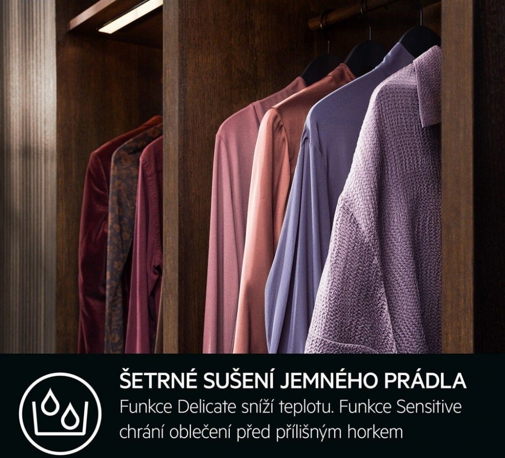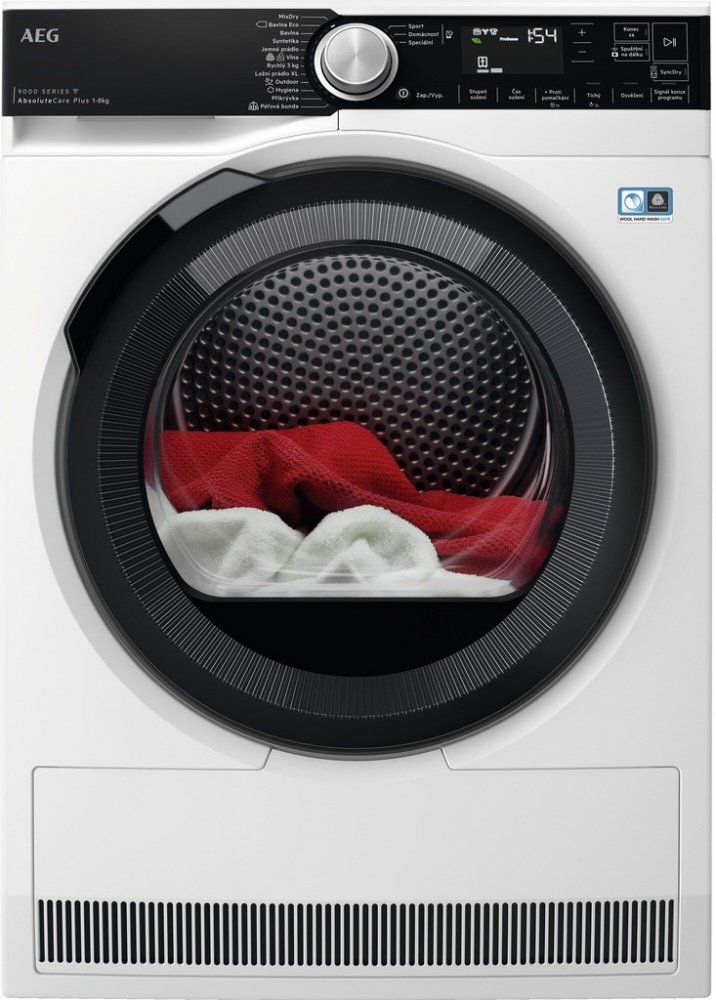 ABSOLUTECARE. ZARUČENĚ SE NESRAZÍ*AbsoluteCare používá technologie tepelného čerpadla společně s řízenými pohyby bubnu a regulací teploty pro šetrné sušení všech druhů oblečení včetně jemných textílií. Vlna se nesráží a hedvábí neztrácí svůj tvar. Technologie AbsoluteCare obnovuje voděodolnost outdoorového oblečení. Výjimečná péče díky certifikátu Woolmark Blue.*Ve srovnání s běžným sušením na vzduchu.